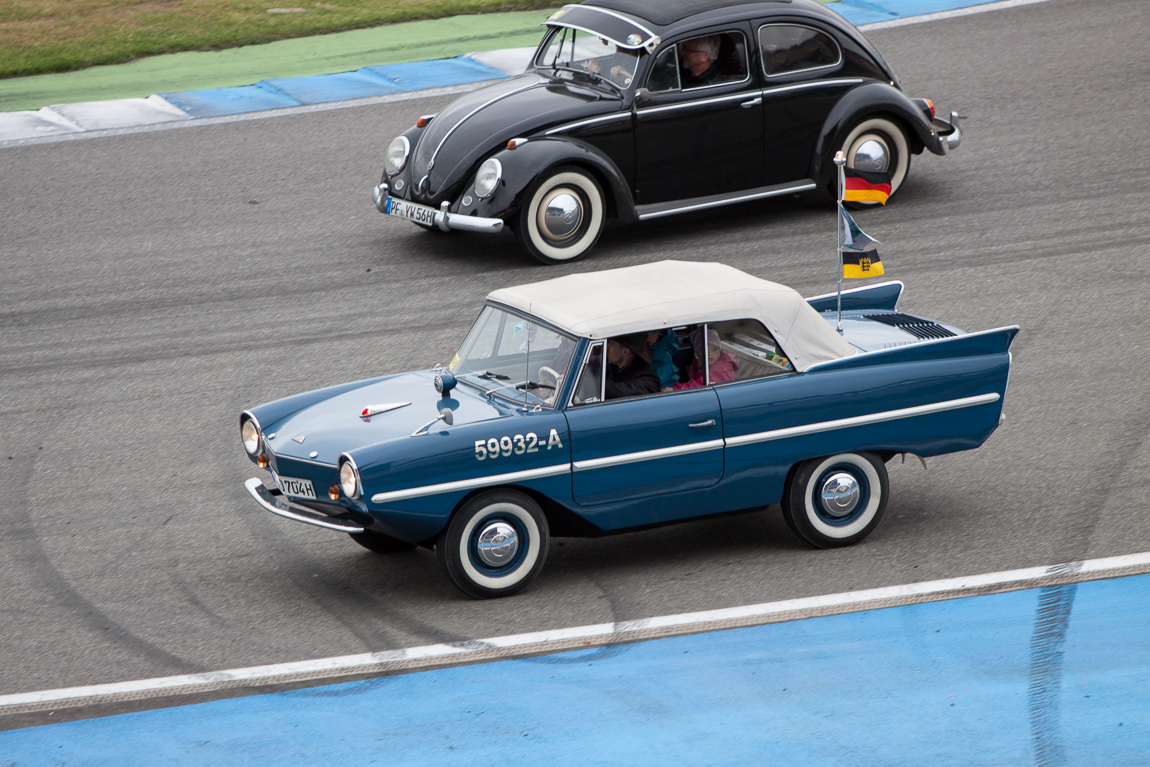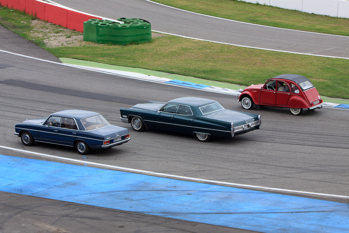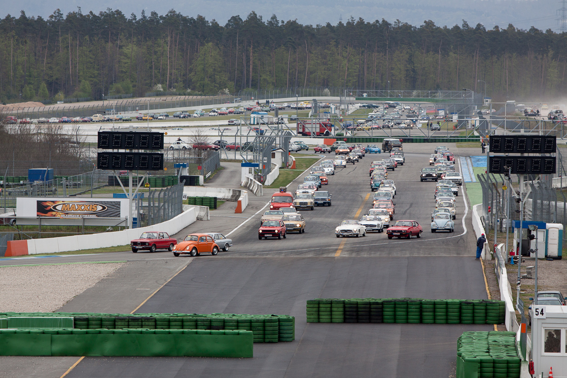 And here are the pictures from saturday, more cars (you may notice a theme here…) The same racing, but additional an attempt to do the longest classic car parade ever. About 950 rare and classic cars were driving on the Hockenheimring…