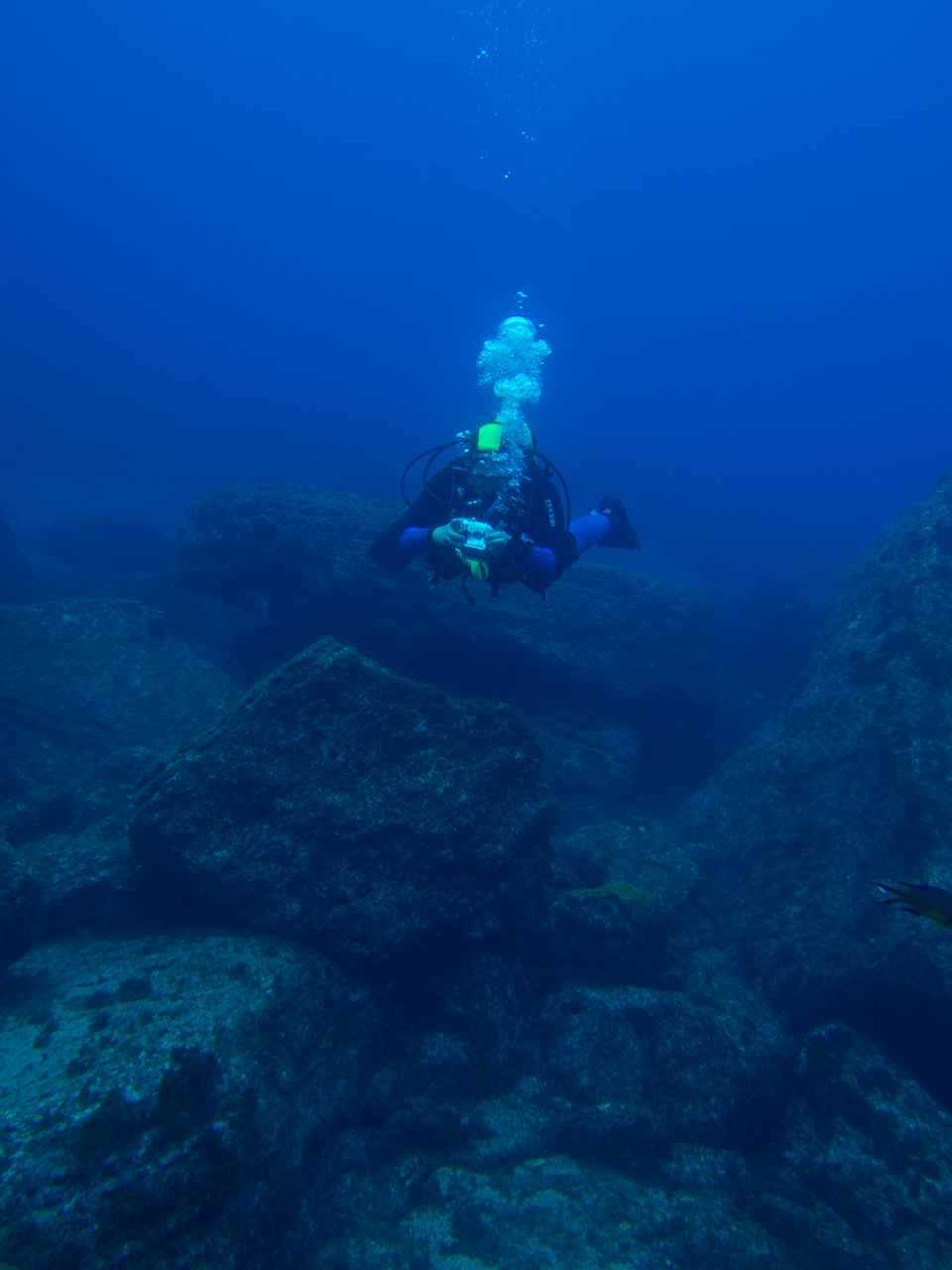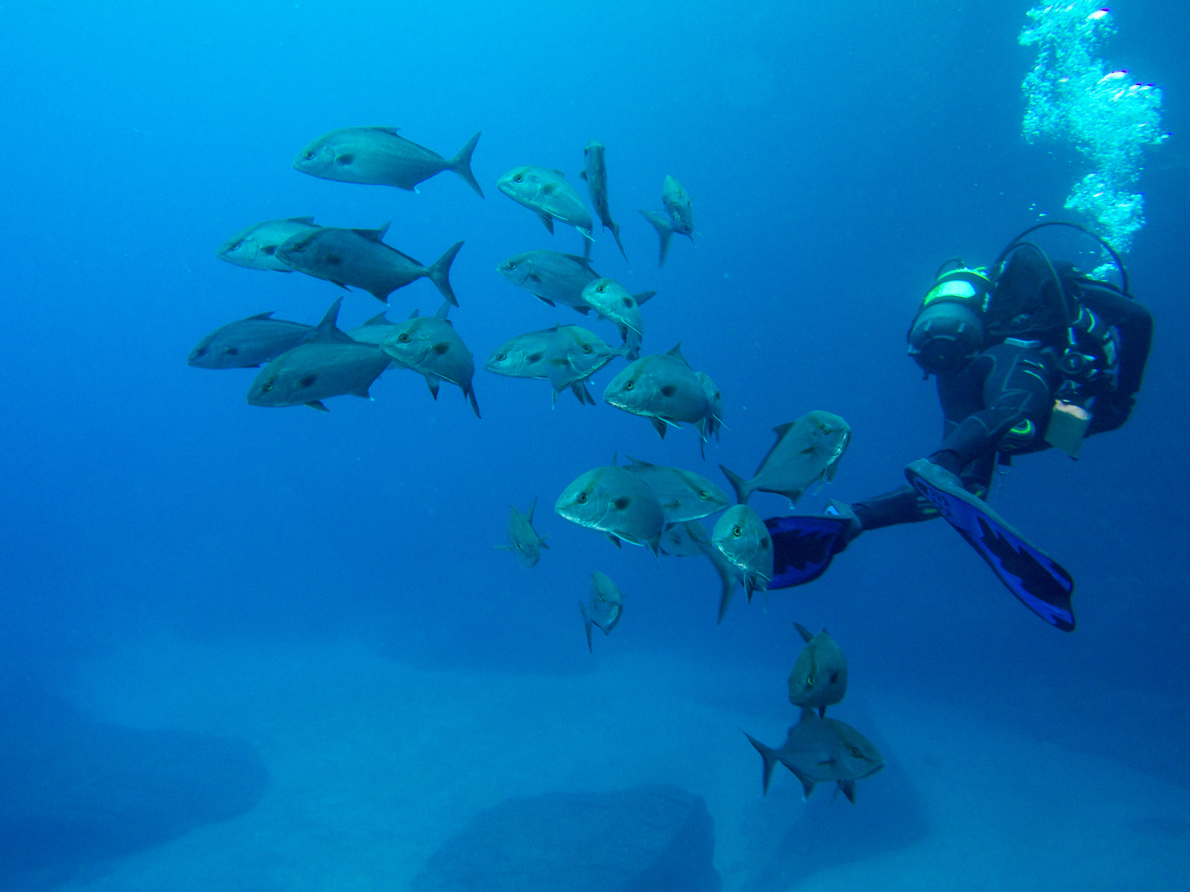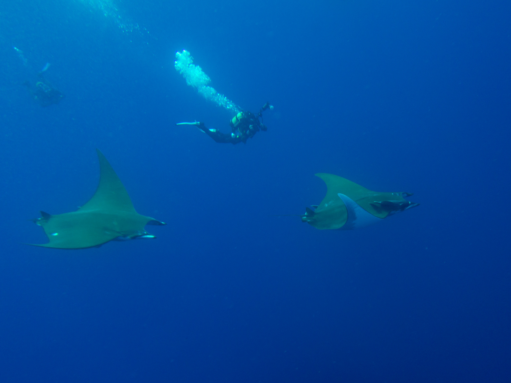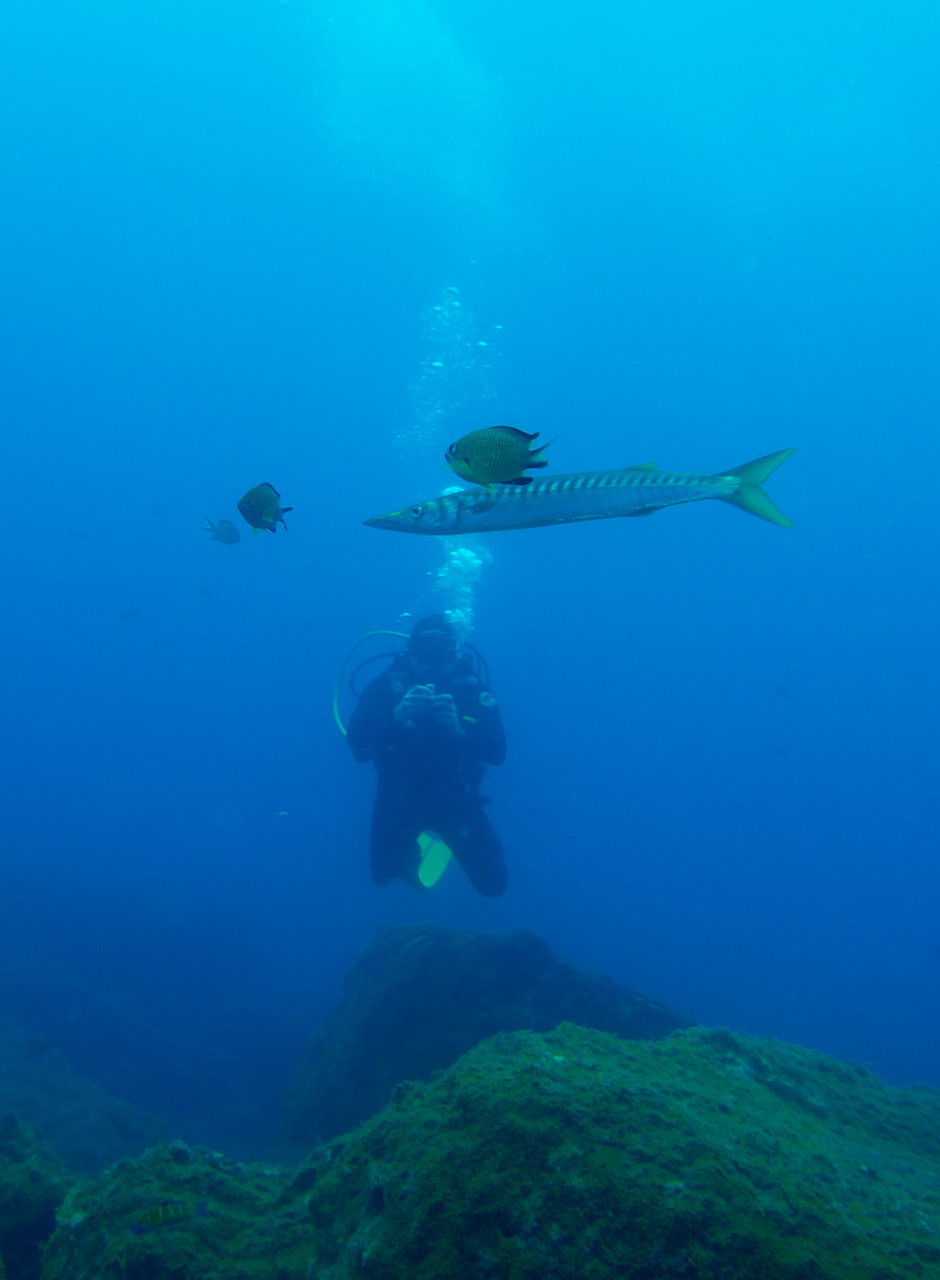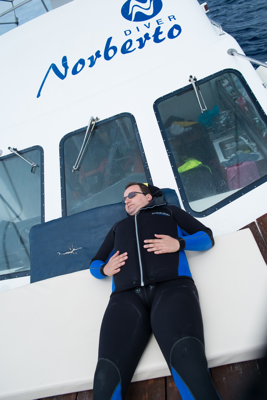 We did a lot of diving with Norberto. Weather was mostly bad, but when you are underwater it doesn’t matter too much. We did some dives close to the shore which were already spectacular, but the most thrilling dive was at Princess Alice bank, some 100 miles offshore. You get there in a 4 hour boat ride (which was pretty rough already), then you dive in the open water, surrounded completely by blue. After hanging about 30mins on a rope bouncing up and down with the waves by more than a meter, two larges Mantas approached us. This was one of the most impressive things I have seen underwater so far. Unfortunately I was too beaten up to do the second dive, when more Mantas and a bunch of Tunas came. We also saw a hammerhead shark passing by the boat in shorter distance (only the fin, but stil the first shark I saw in real life).