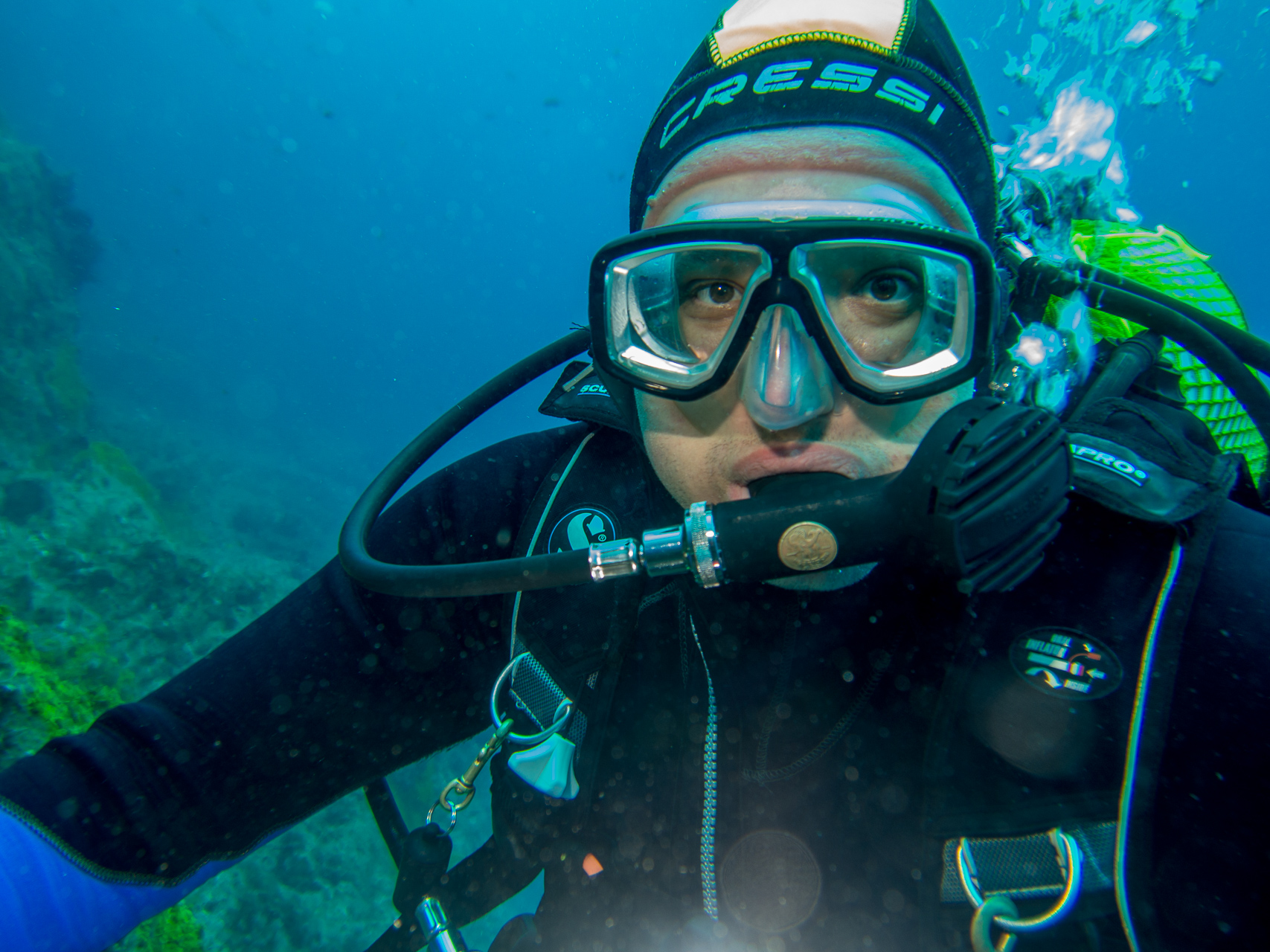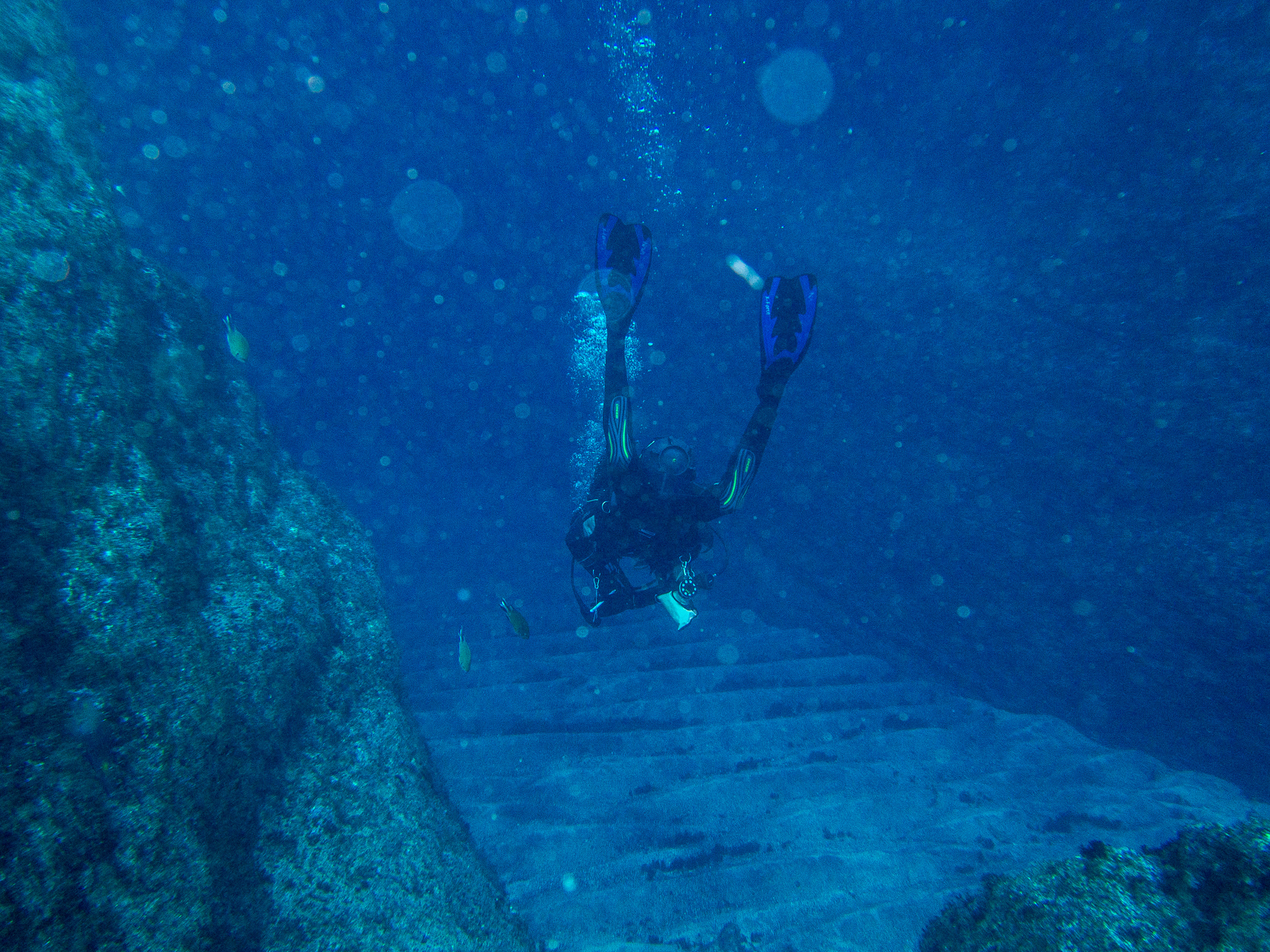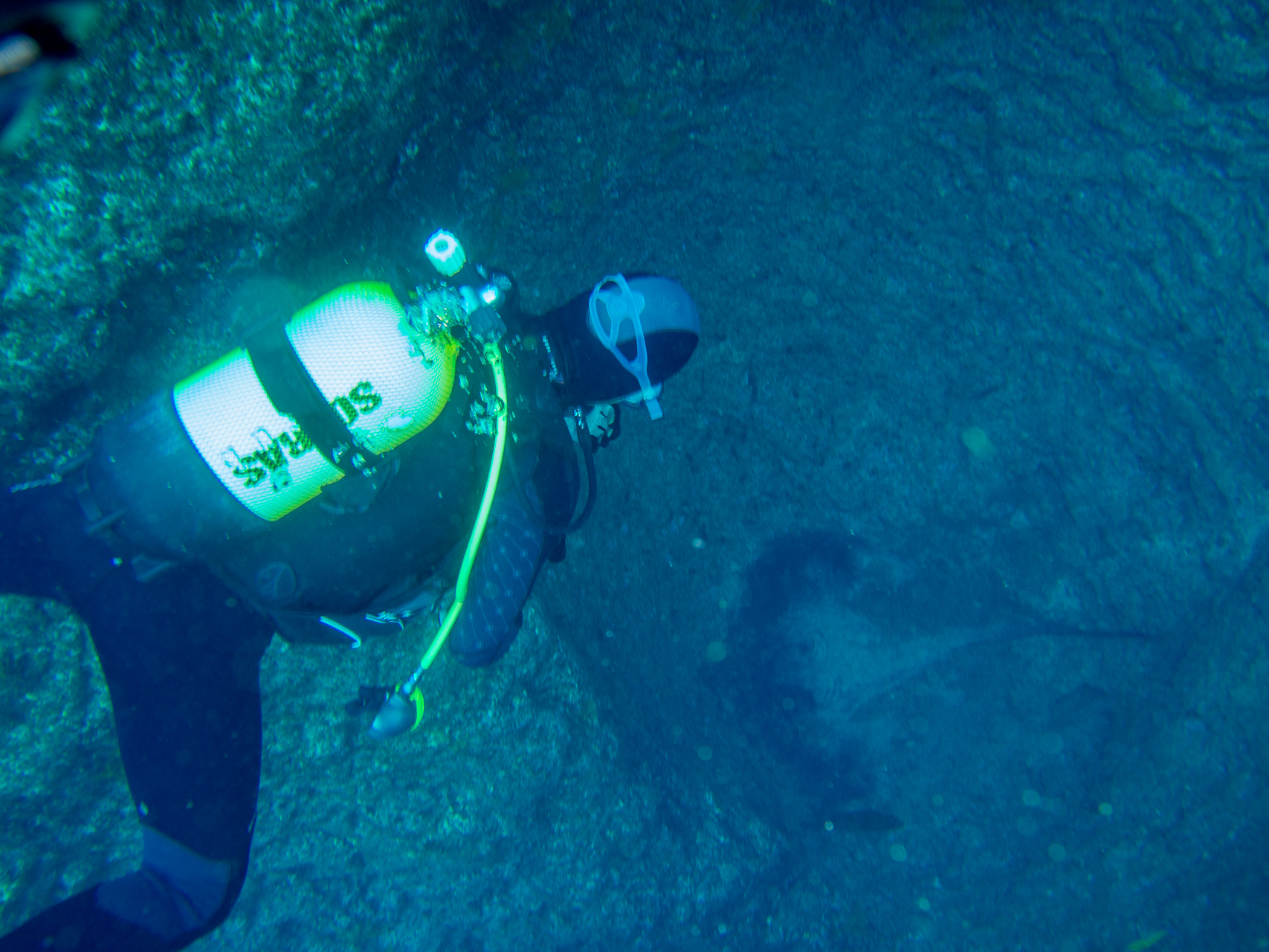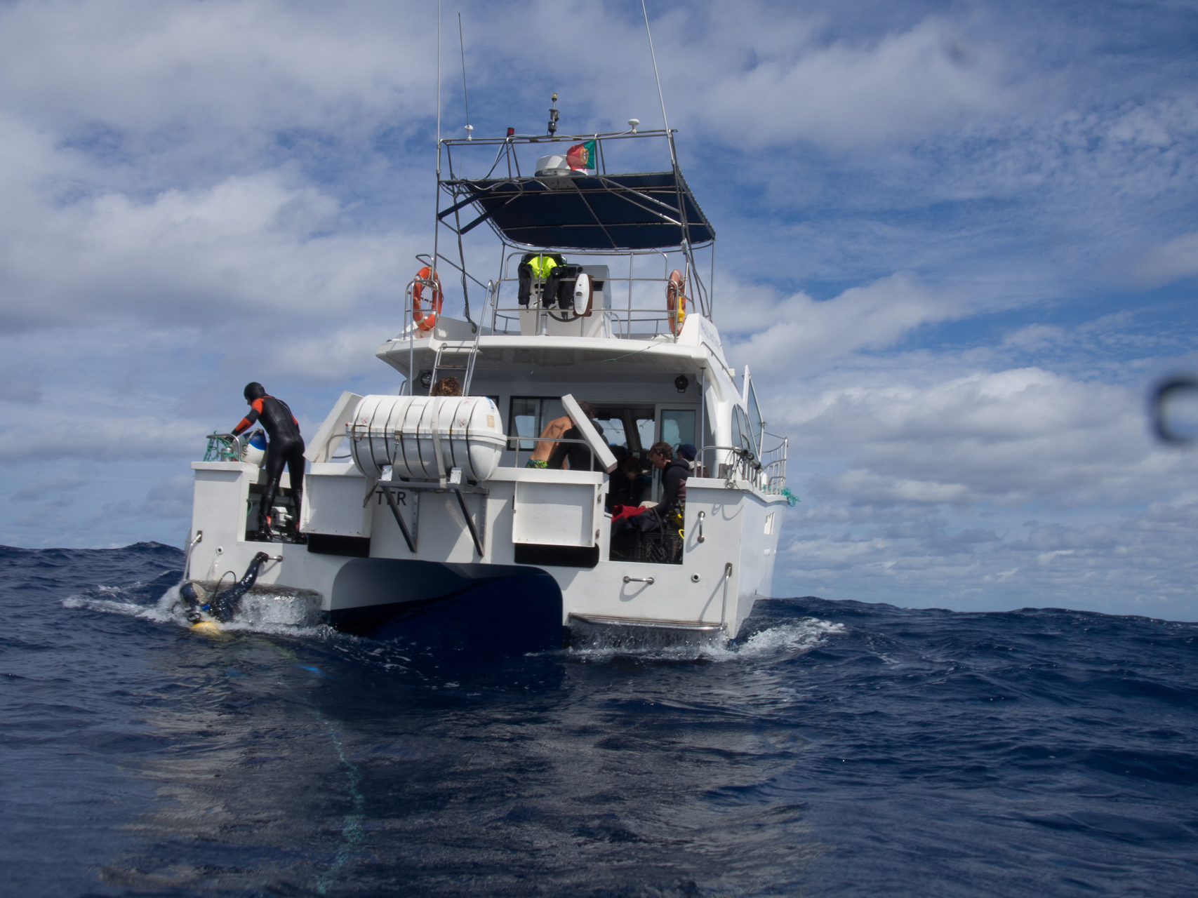 We did a lot of diving with Norberto. Weather was mostly bad, but when you are underwater it doesn’t matter too much. We did some dives close to the shore which were already spectacular, but the most thrilling dive was at Princess Alice bank, some 100 miles offshore. You get there in a 4 hour boat ride (which was pretty rough already), then you dive in the open water, surrounded completely by blue. After hanging about 30mins on a rope bouncing up and down with the waves by more than a meter, two larges Mantas approached us. This was one of the most impressive things I have seen underwater so far. Unfortunately I was too beaten up to do the second dive, when more Mantas and a bunch of Tunas came. We also saw a hammerhead shark passing by the boat in shorter distance (only the fin, but stil the first shark I saw in real life).