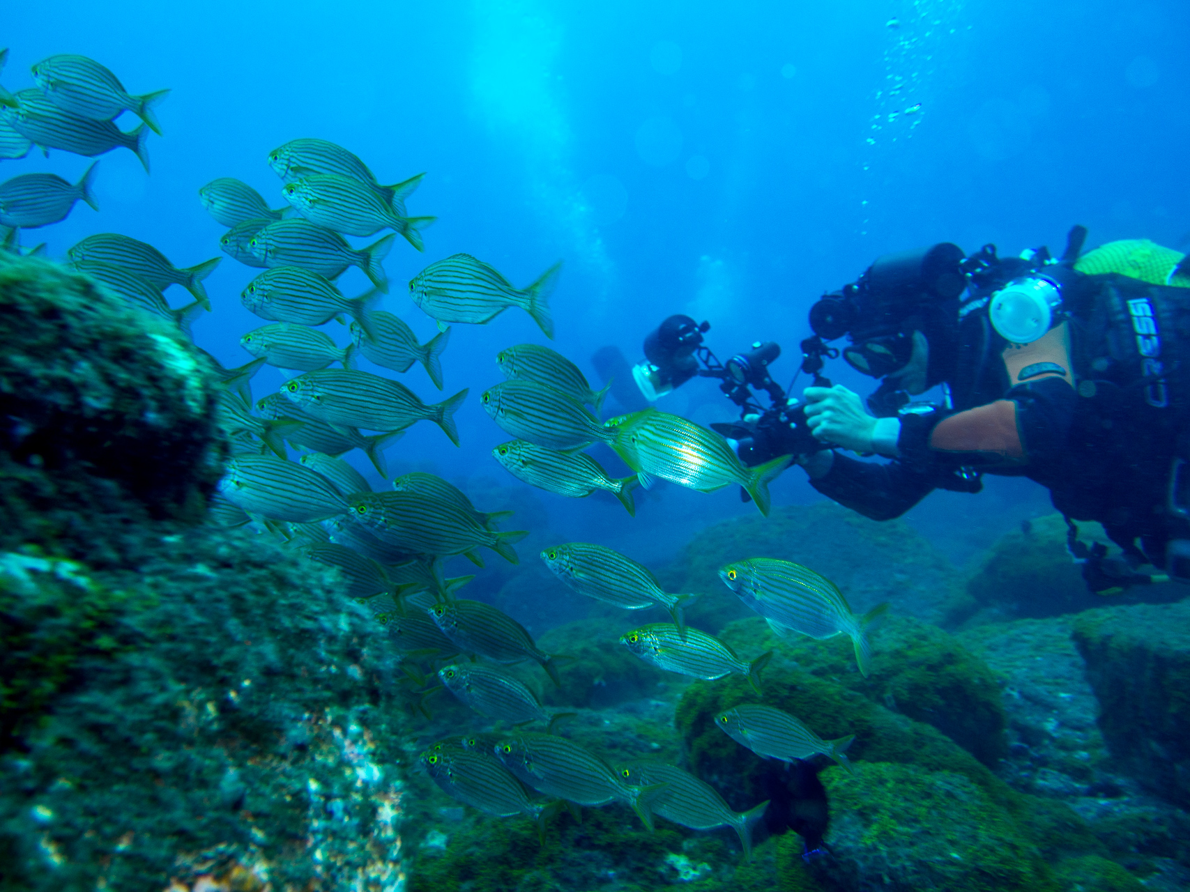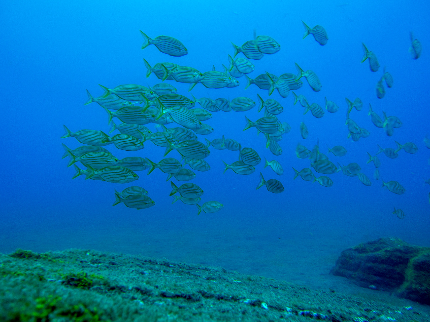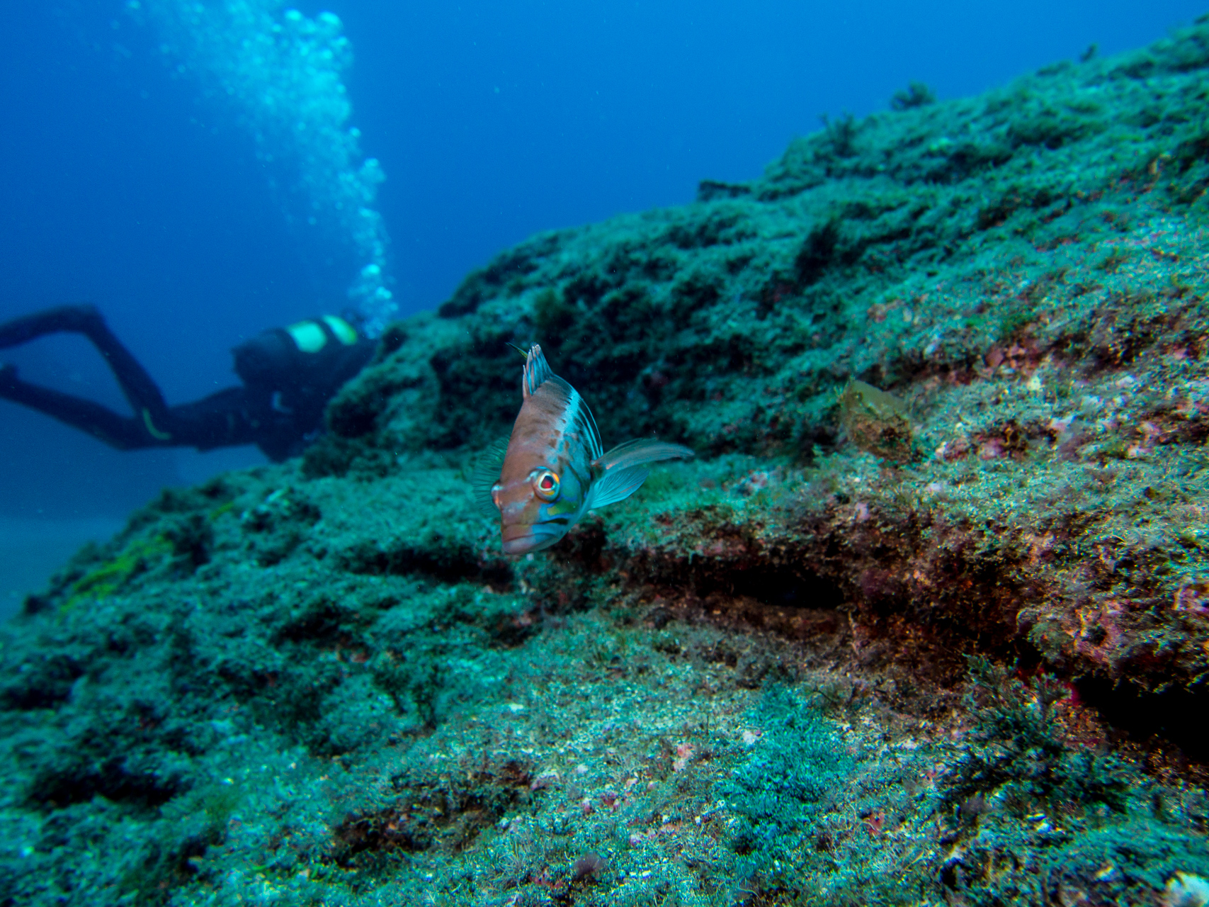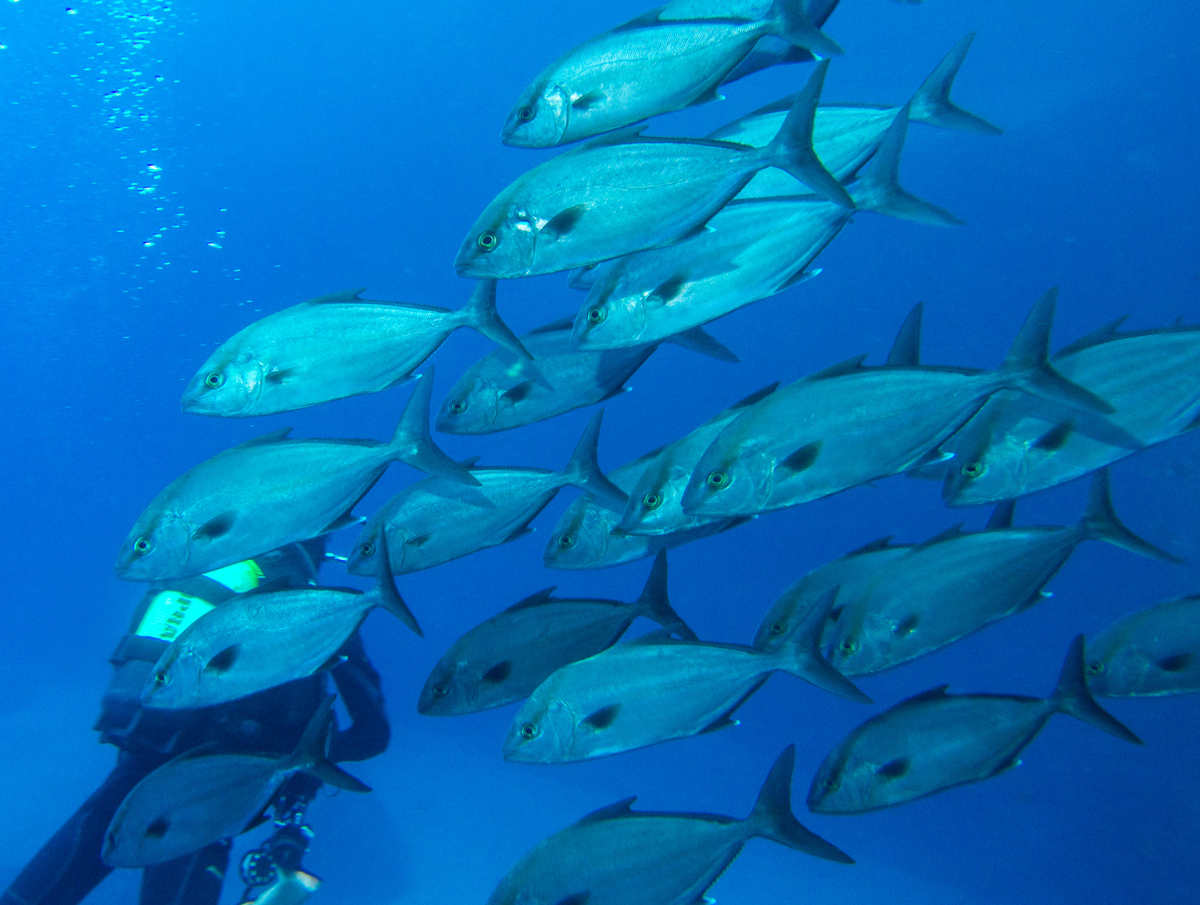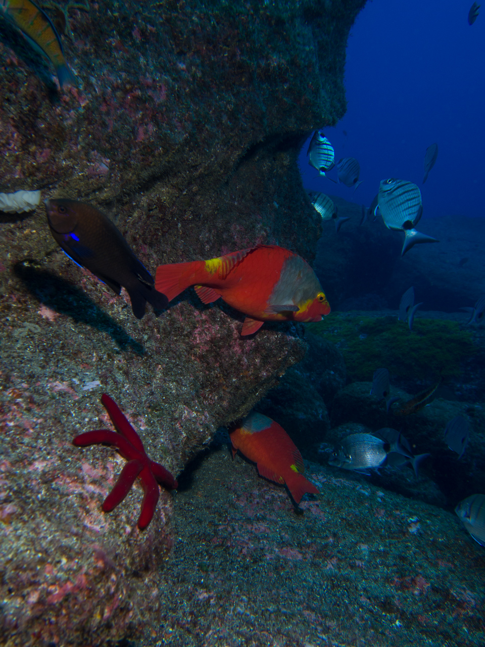 We did a lot of diving with Norberto. Weather was mostly bad, but when you are underwater it doesn’t matter too much. We did some dives close to the shore which were already spectacular, but the most thrilling dive was at Princess Alice bank, some 100 miles offshore. You get there in a 4 hour boat ride (which was pretty rough already), then you dive in the open water, surrounded completely by blue. After hanging about 30mins on a rope bouncing up and down with the waves by more than a meter, two larges Mantas approached us. This was one of the most impressive things I have seen underwater so far. Unfortunately I was too beaten up to do the second dive, when more Mantas and a bunch of Tunas came. We also saw a hammerhead shark passing by the boat in shorter distance (only the fin, but stil the first shark I saw in real life).
