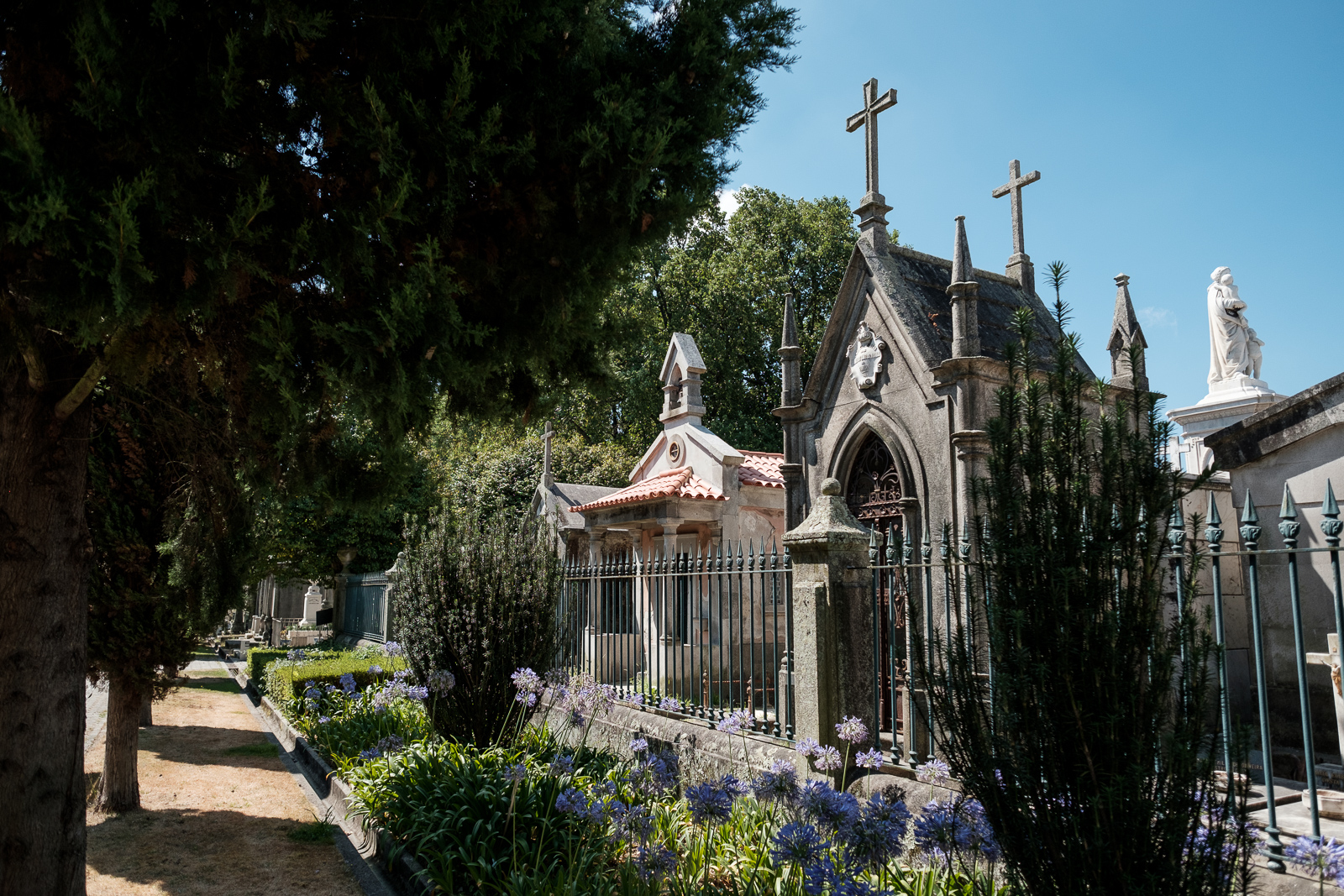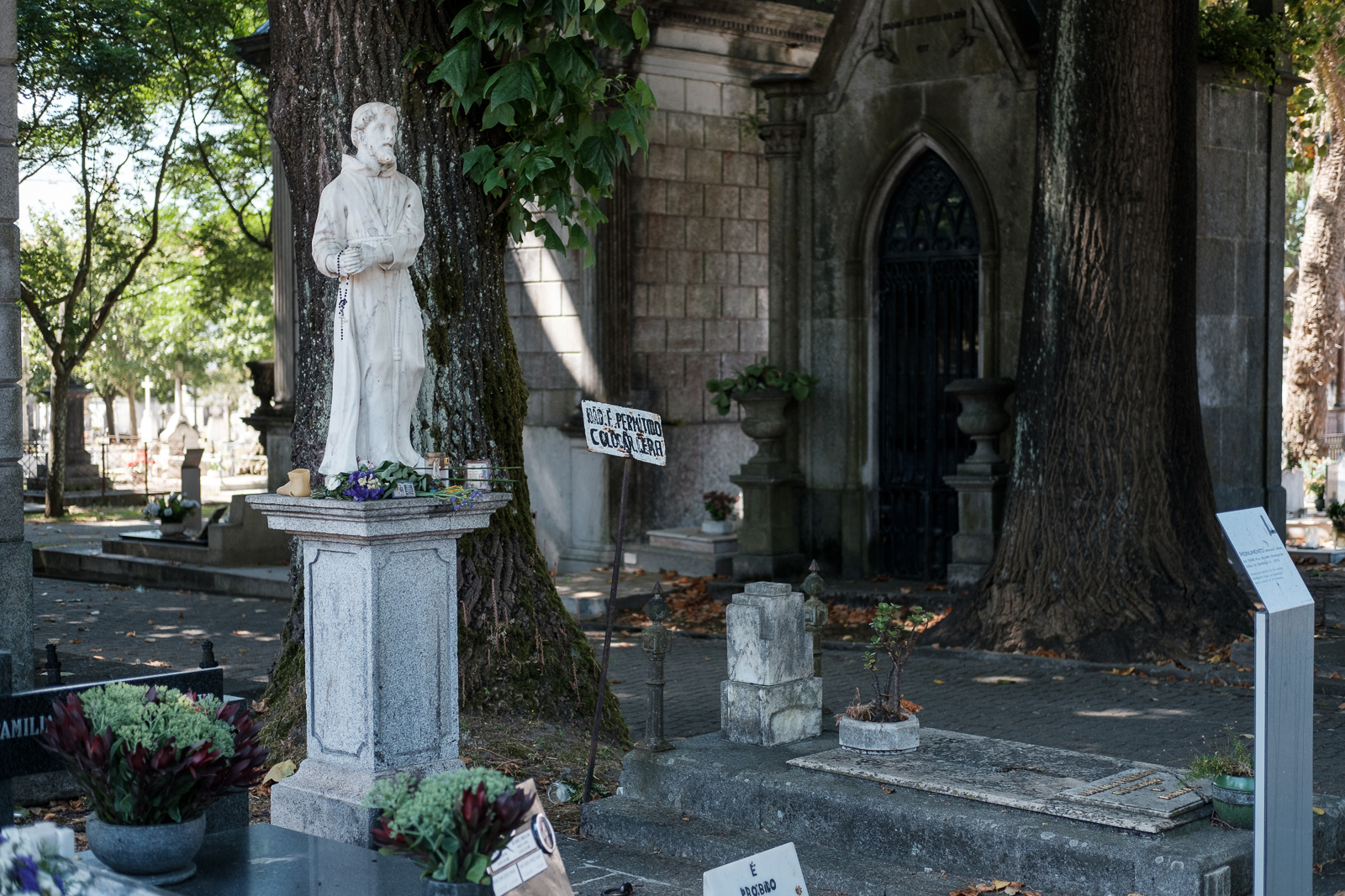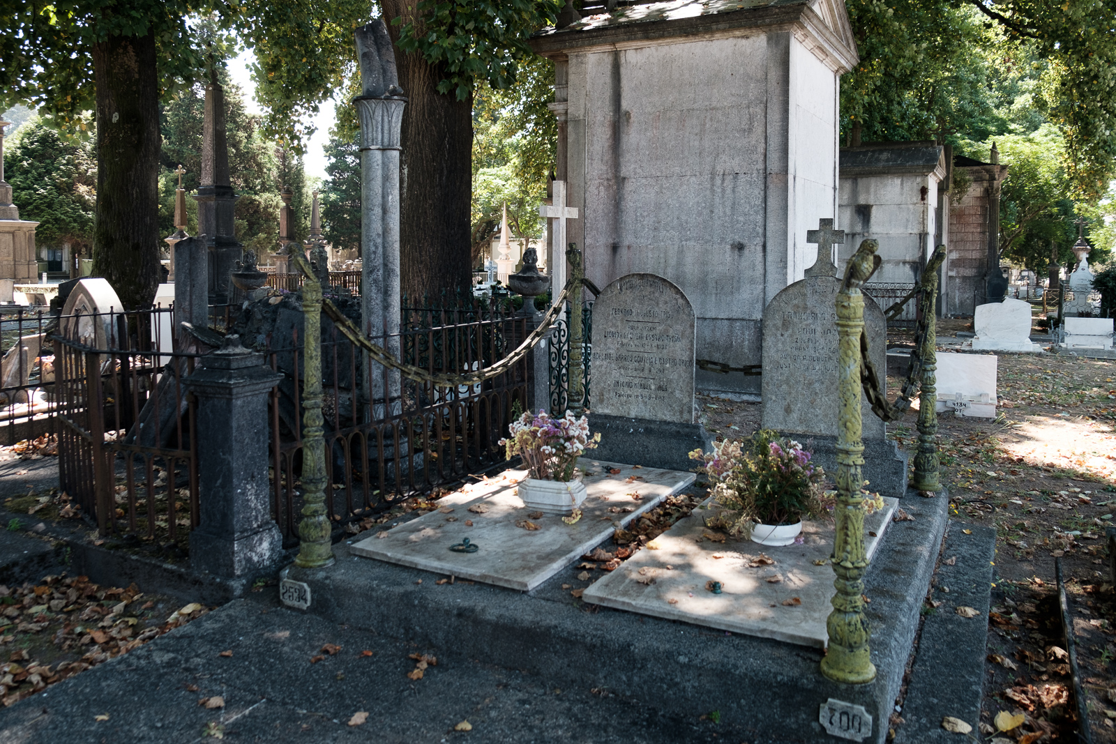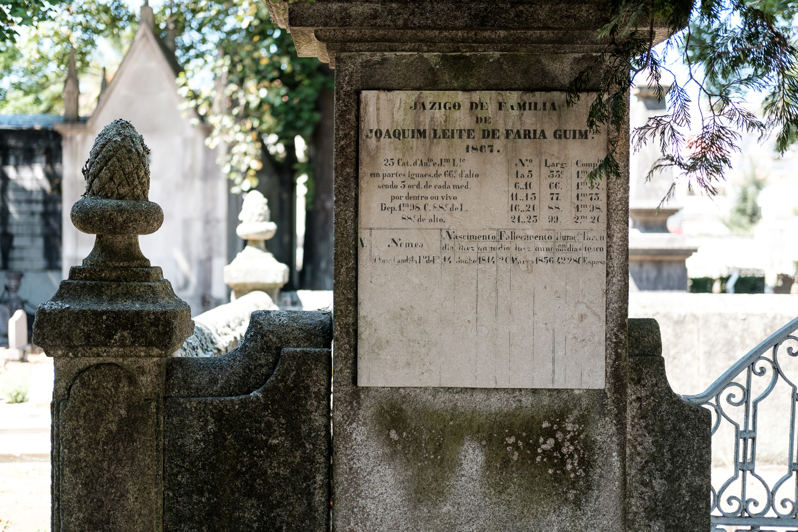 With about 20 she became fed up with men and retreated. Seven years later her paths crossed with the much younger Teresa Maria de Jesus. A passionate love story spun. They lived together and became a passionate couple. However, this love did not last too long. In the autumn of 1868 Teresa Maria died of tubercolosis. She was buried in a part of the cemitery Prado de Reposo, belonging to the Ordem do Terço. Henriqueta lost all will to live and became buried in grief. She wanted to give her friend a more fitting grave, so she bought a patch at the cemitery and ordered a statue of St. Francis made from the finest italian marble.