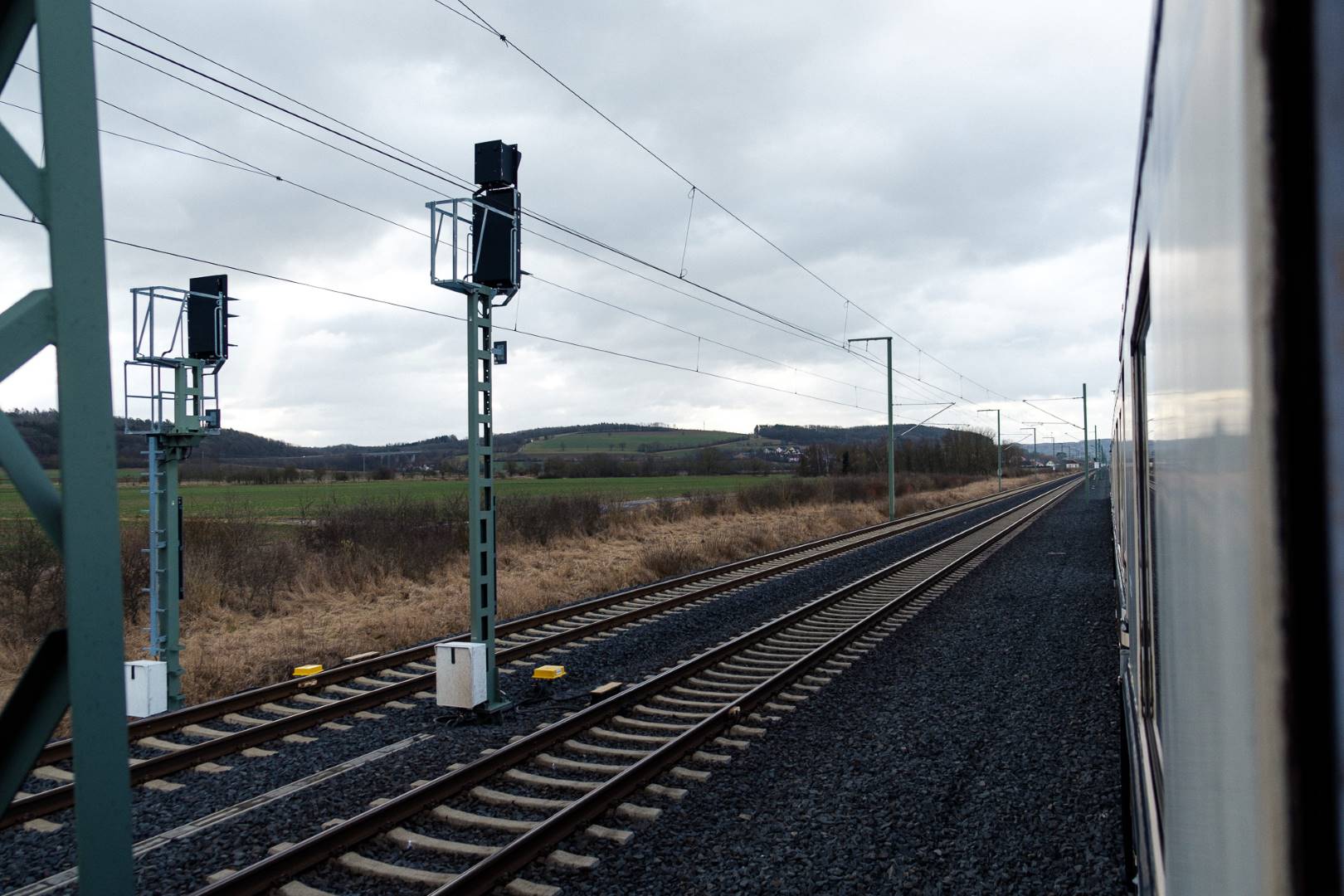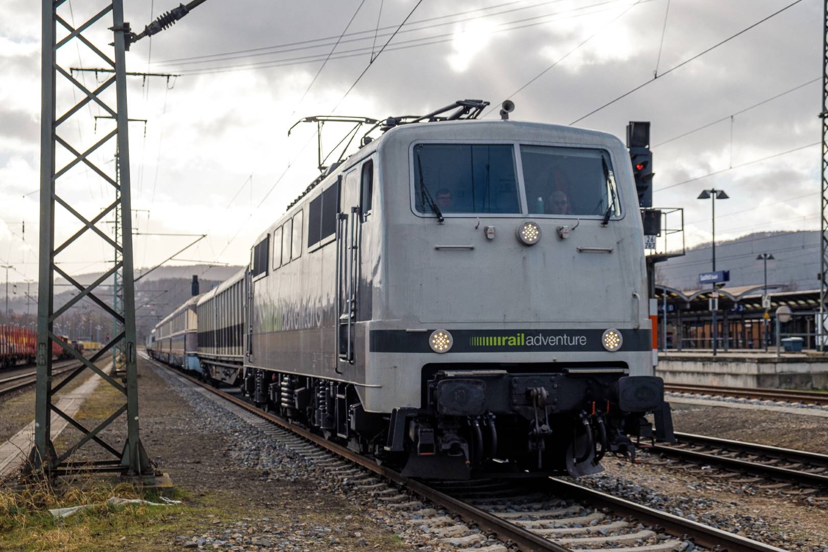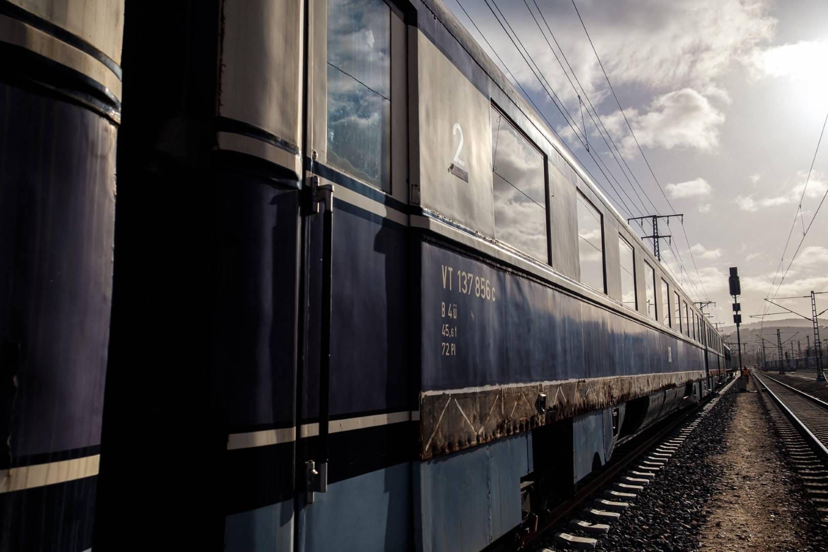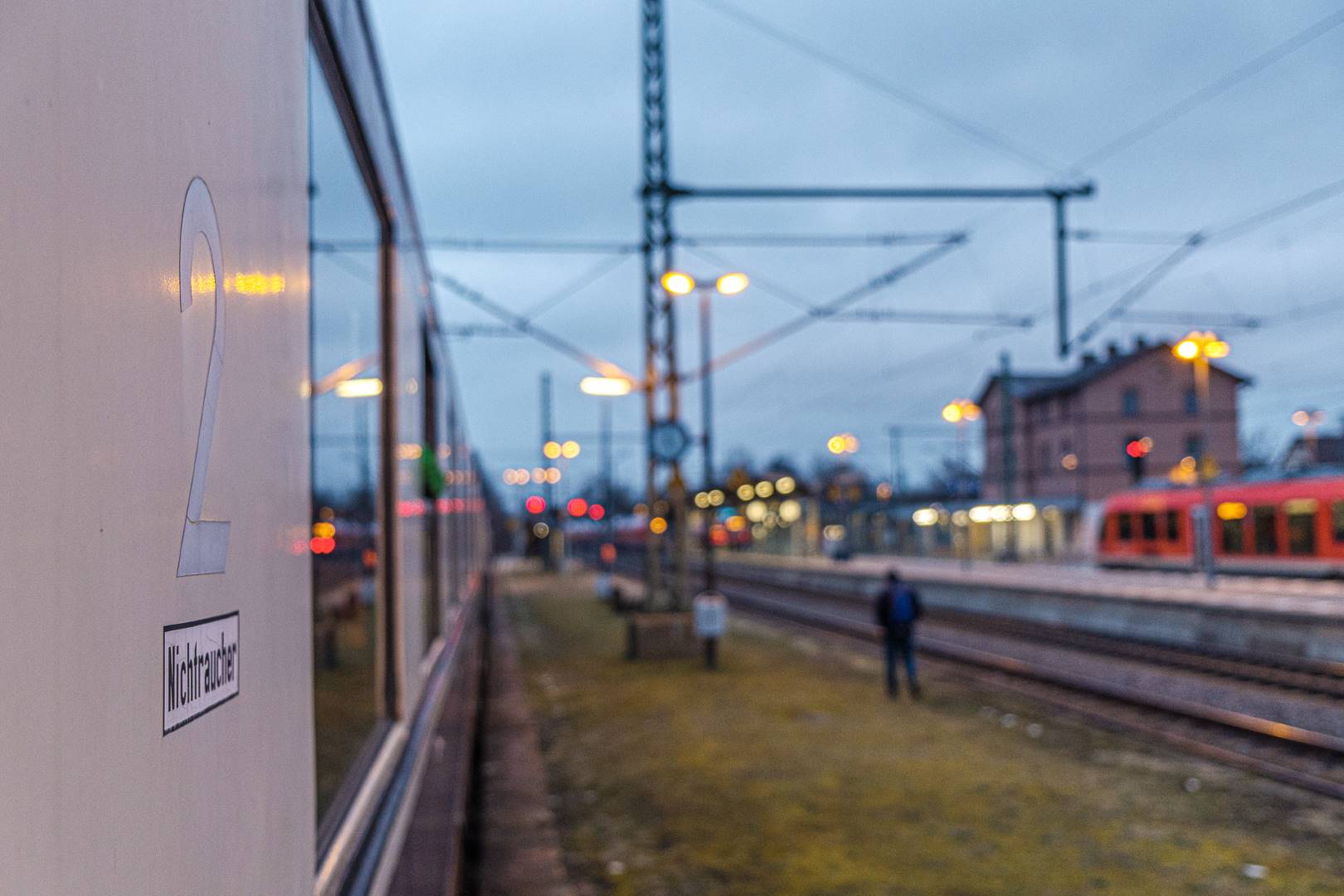 The transfer took two days and lead from Munich via the Altmühl valley and many other small branch lines via Bamberg and the Saale valley to Delitzsch near Leipzig. The train was coupled between two adapter cars and a few brake cars to a locomotive from Rail Adventure, who was responsible for the whole transfer. We needed to check at each halt and during the ride that everything was technically OK and there were no bearings running hot.