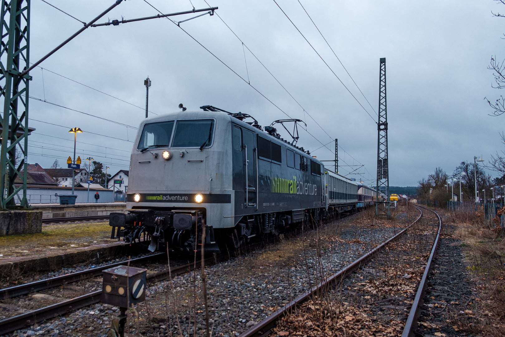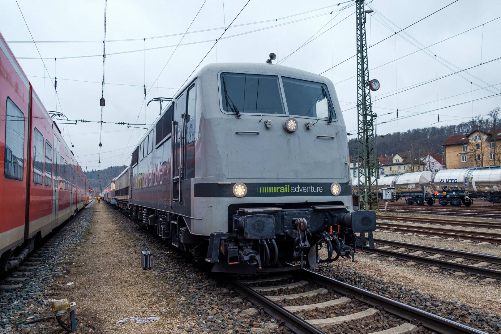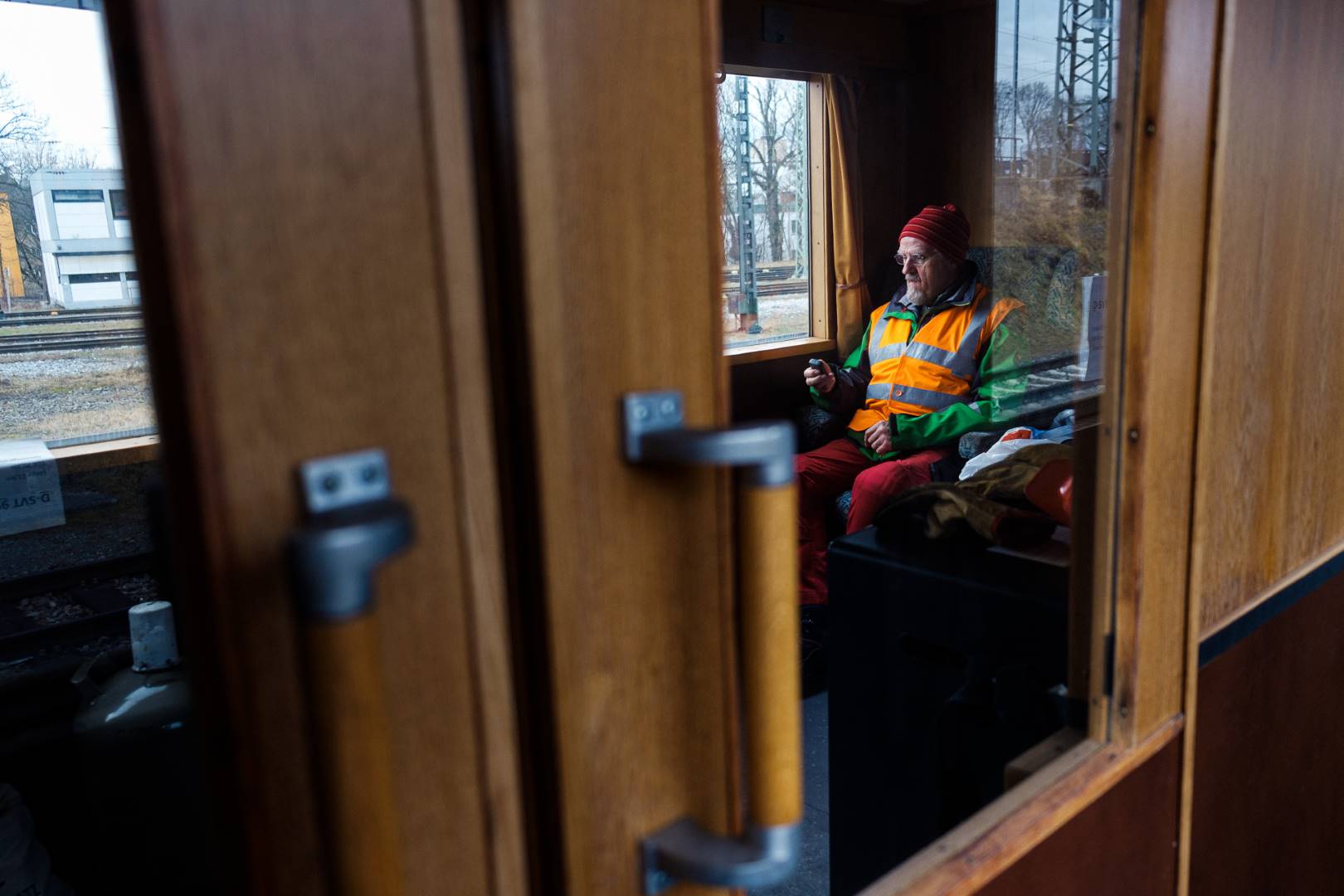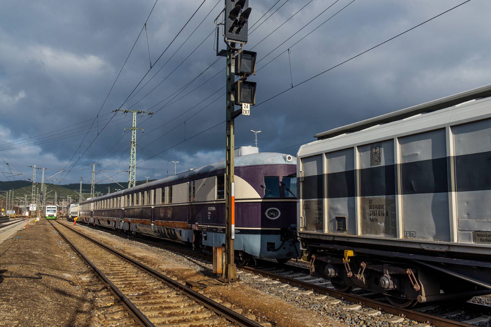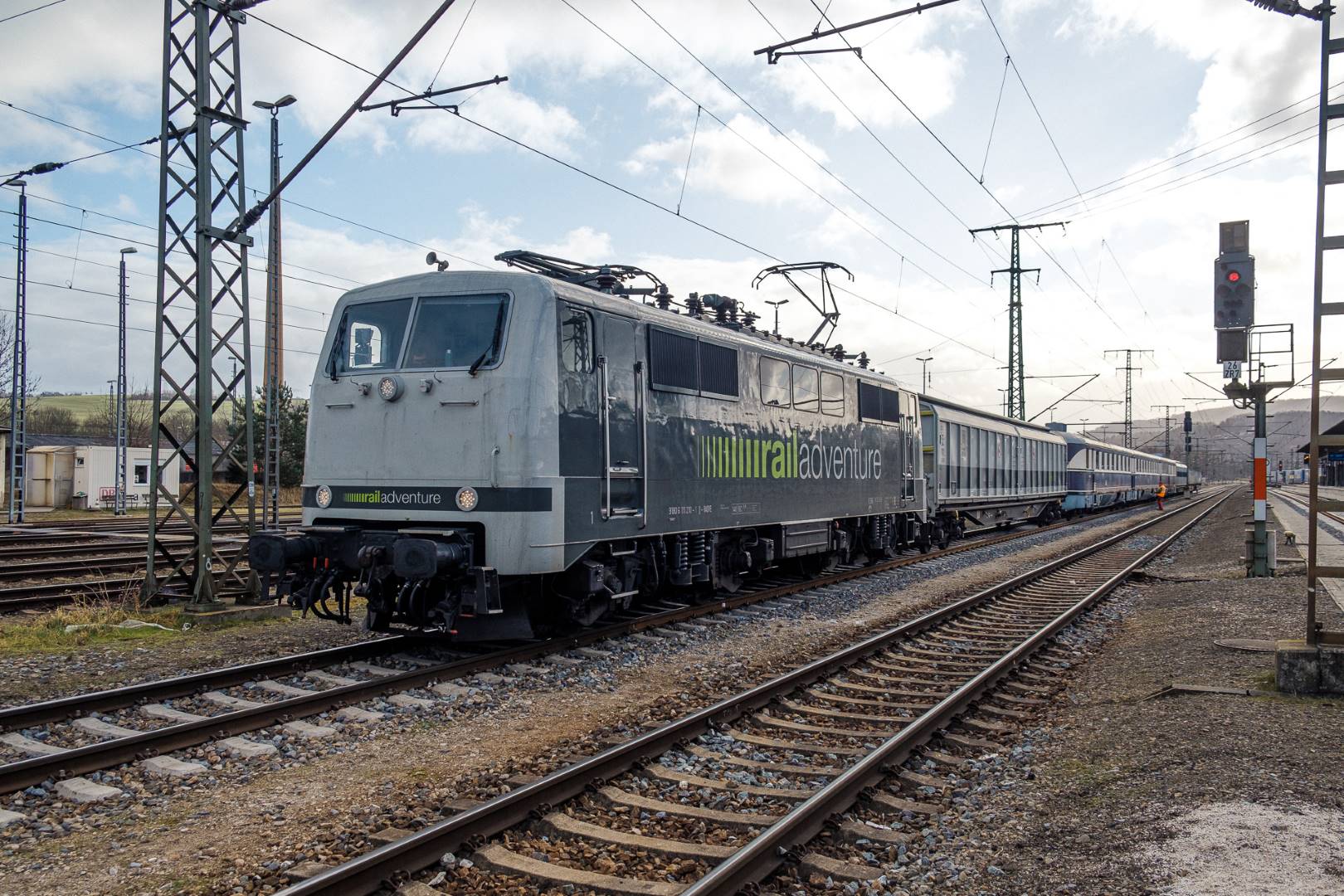 The transfer took two days and lead from Munich via the Altmühl valley and many other small branch lines via Bamberg and the Saale valley to Delitzsch near Leipzig. The train was coupled between two adapter cars and a few brake cars to a locomotive from Rail Adventure, who was responsible for the whole transfer. We needed to check at each halt and during the ride that everything was technically OK and there were no bearings running hot.