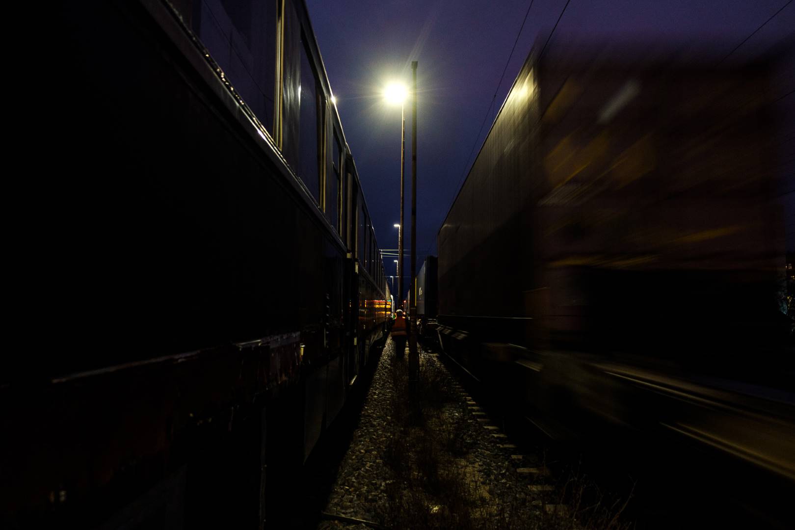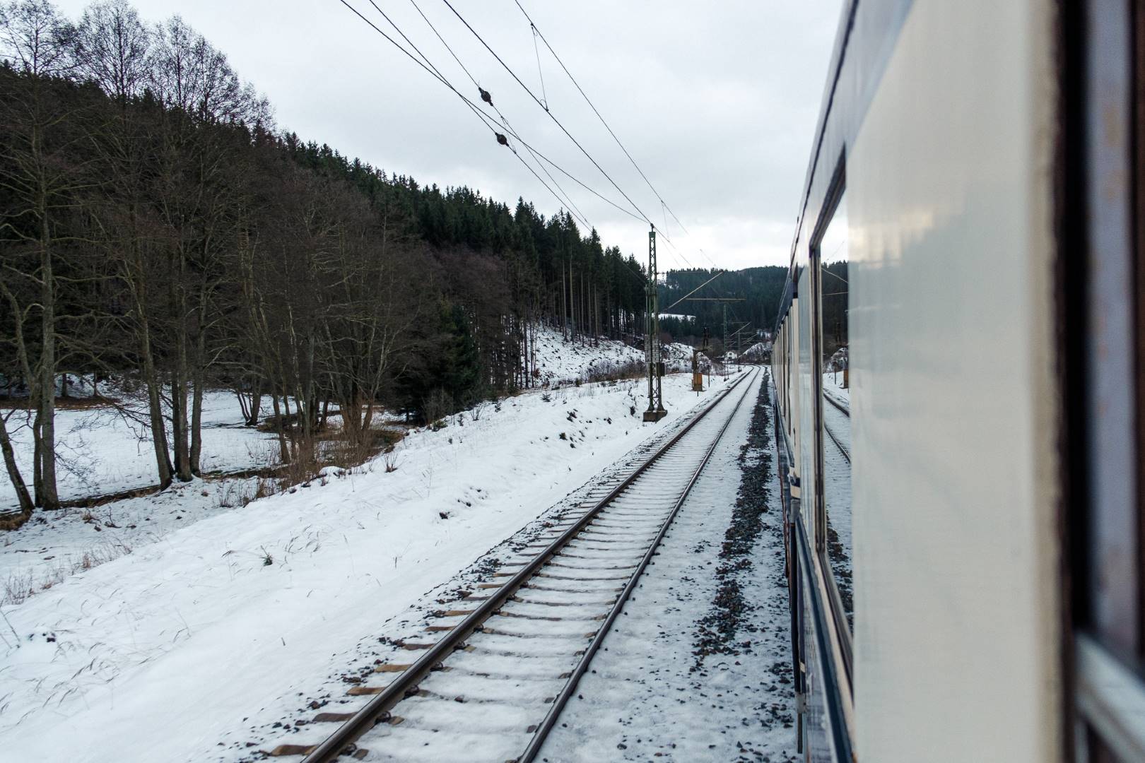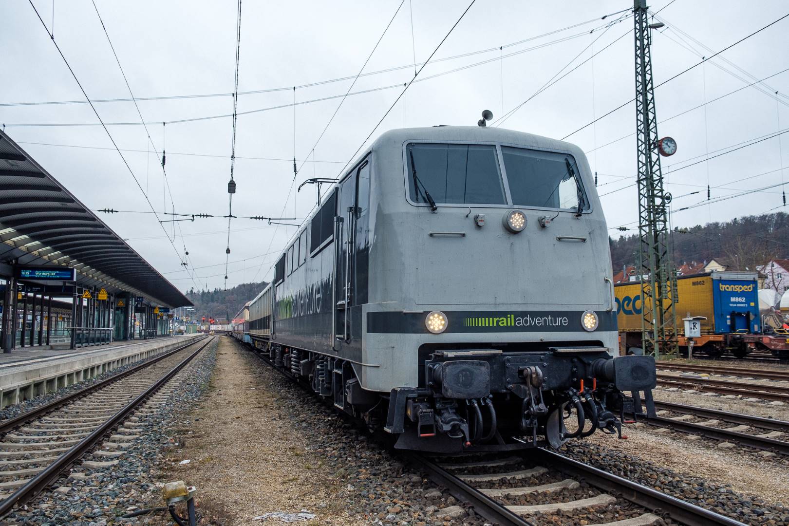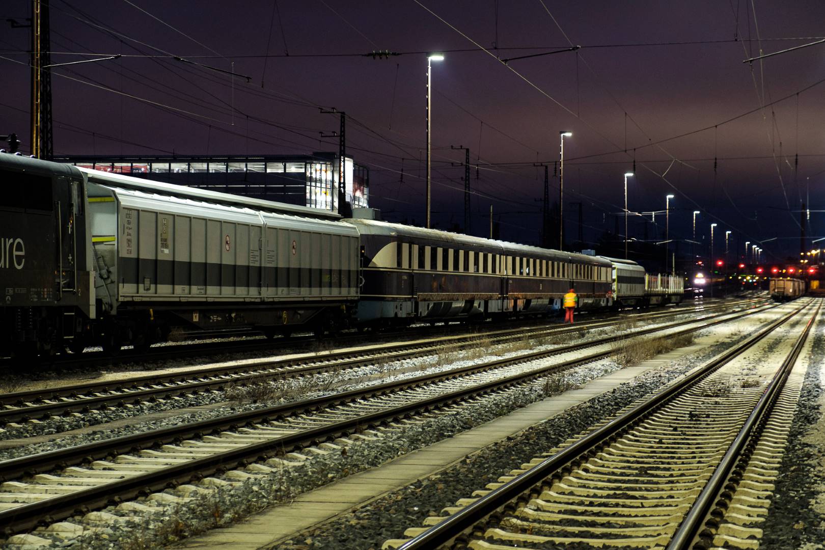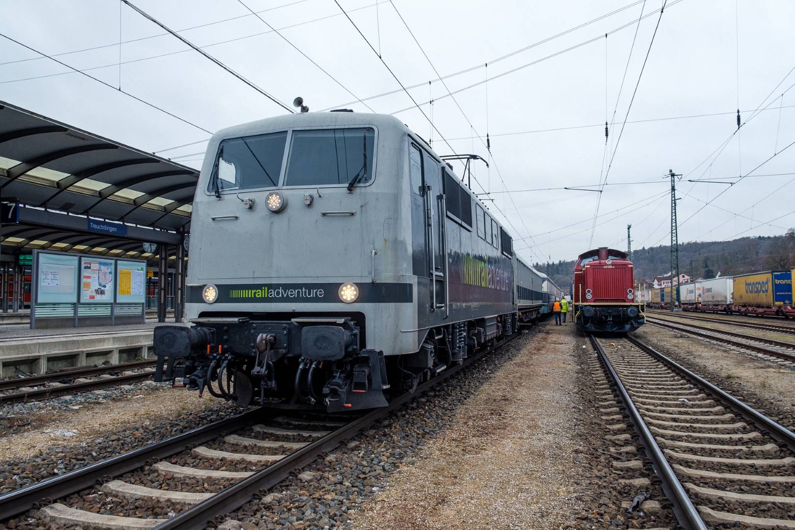The transfer took two days and lead from Munich via the Altmühl valley and many other small branch lines via Bamberg and the Saale valley to Delitzsch near Leipzig. The train was coupled between two adapter cars and a few brake cars to a locomotive from Rail Adventure, who was responsible for the whole transfer. We needed to check at each halt and during the ride that everything was technically OK and there were no bearings running hot.