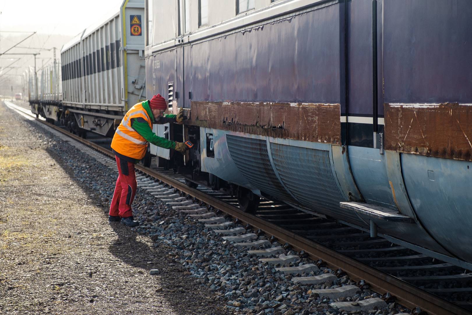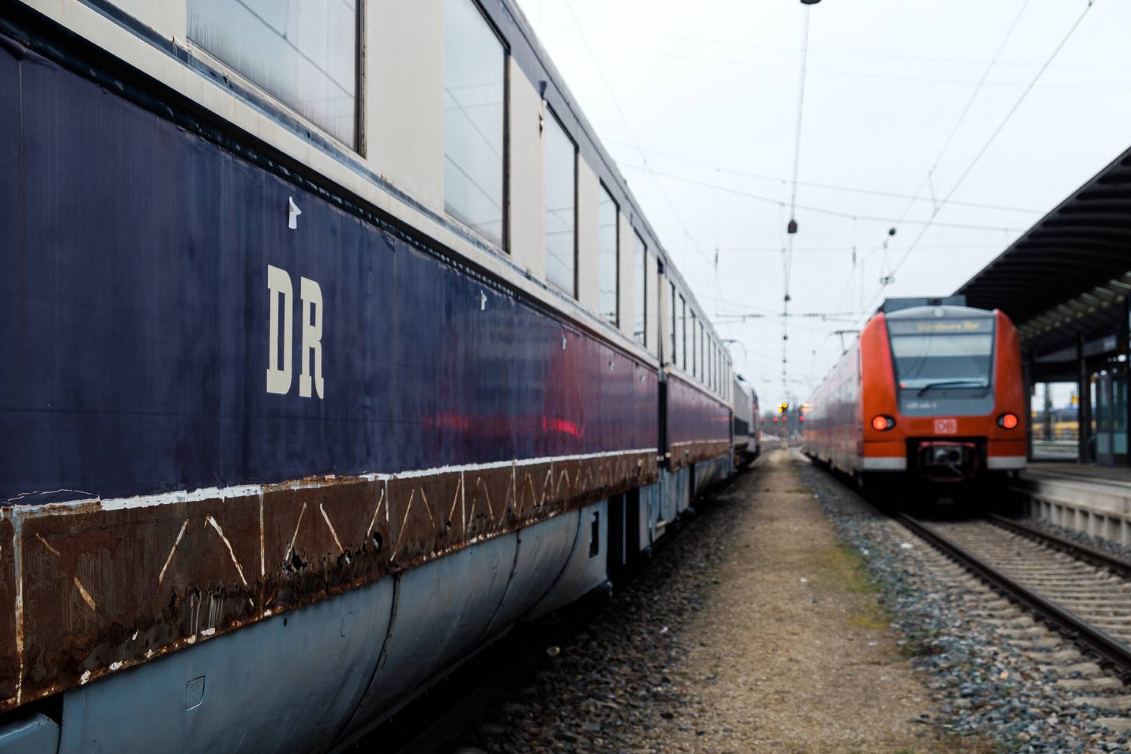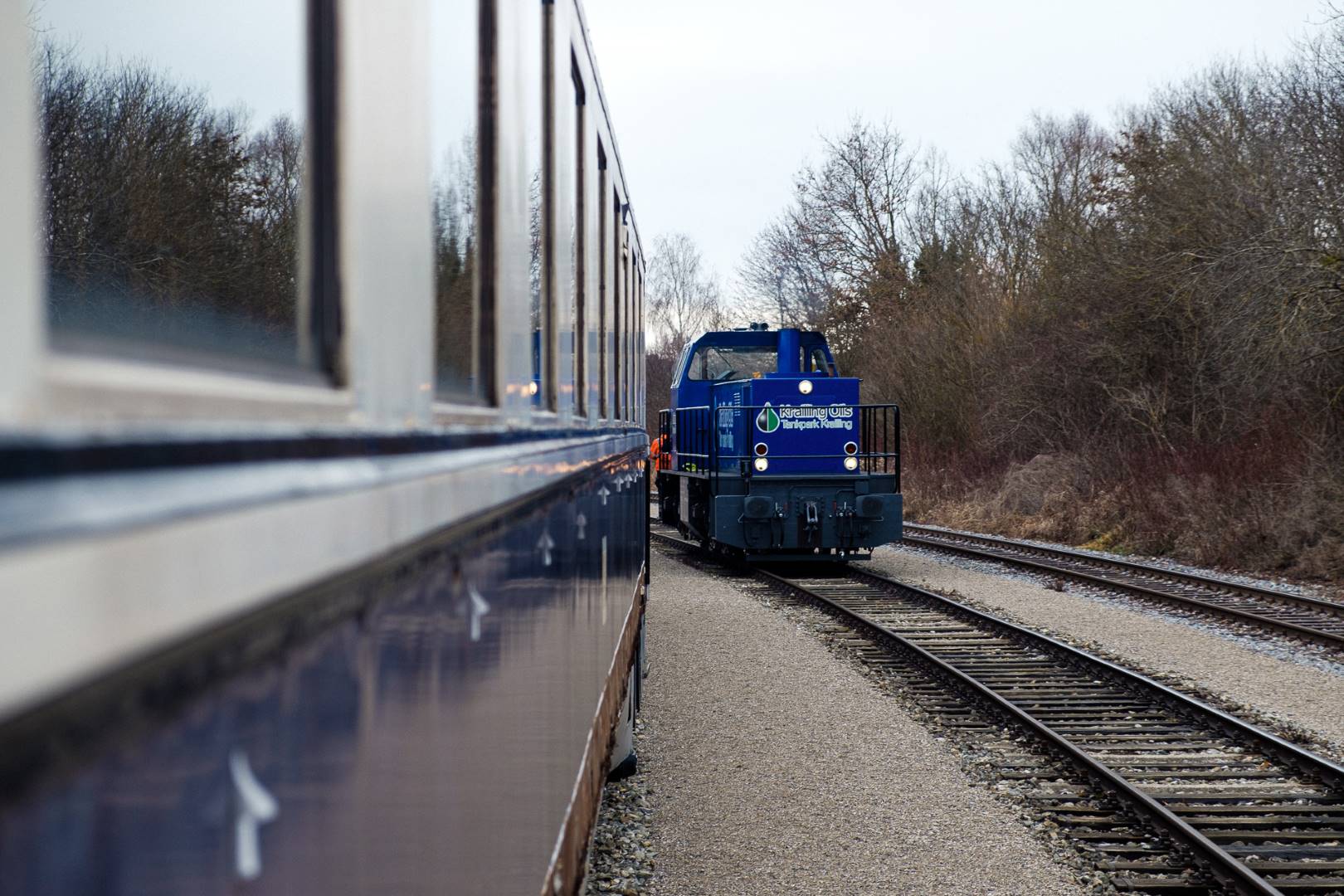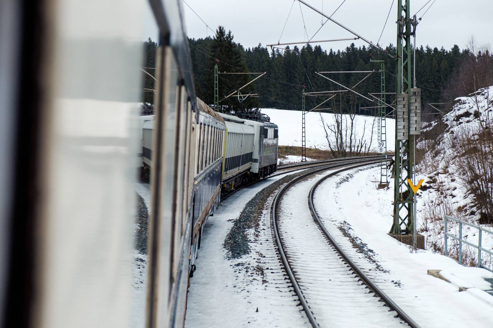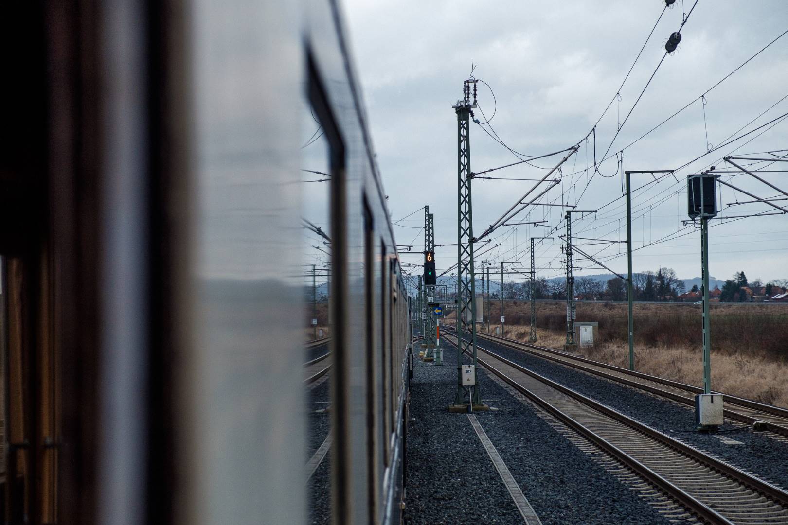 The transfer took two days and lead from Munich via the Altmühl valley and many other small branch lines via Bamberg and the Saale valley to Delitzsch near Leipzig. The train was coupled between two adapter cars and a few brake cars to a locomotive from Rail Adventure, who was responsible for the whole transfer. We needed to check at each halt and during the ride that everything was technically OK and there were no bearings running hot.