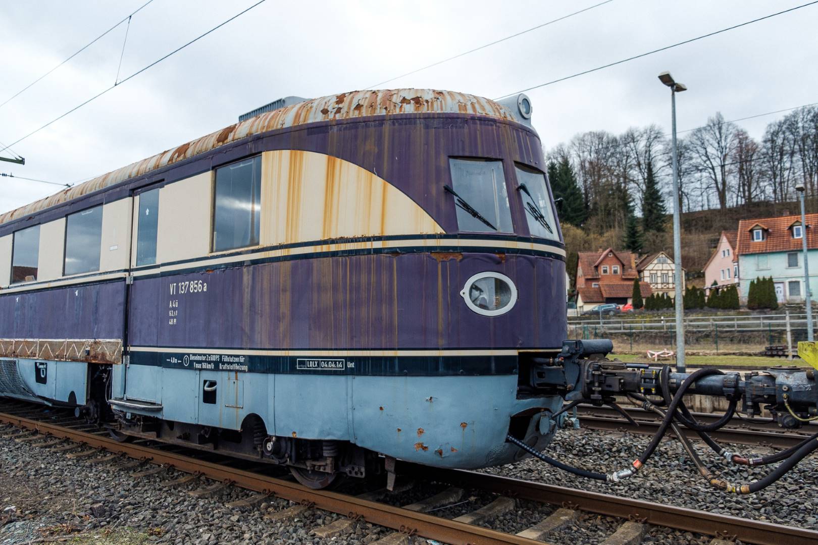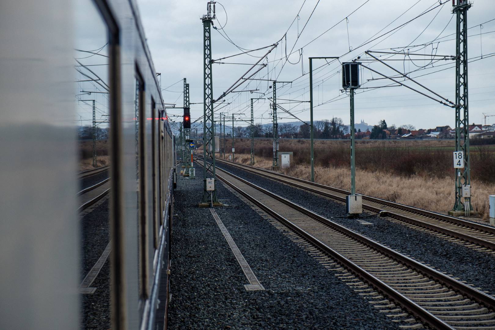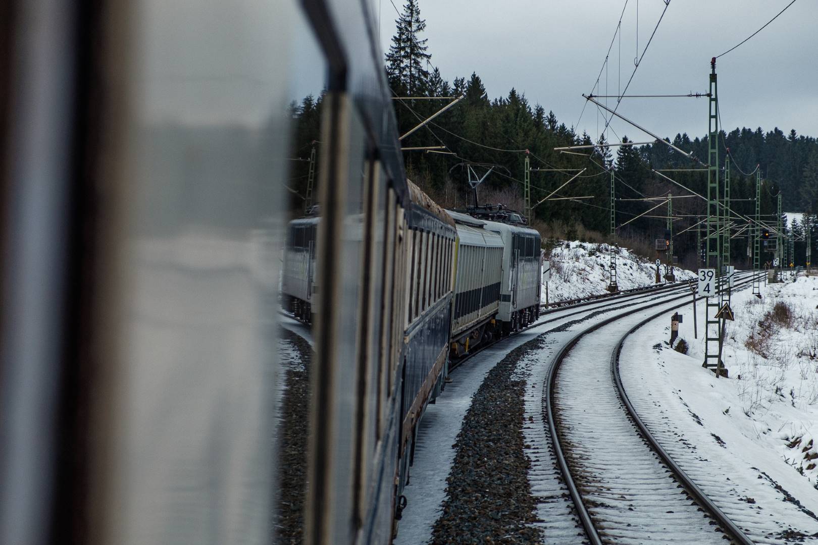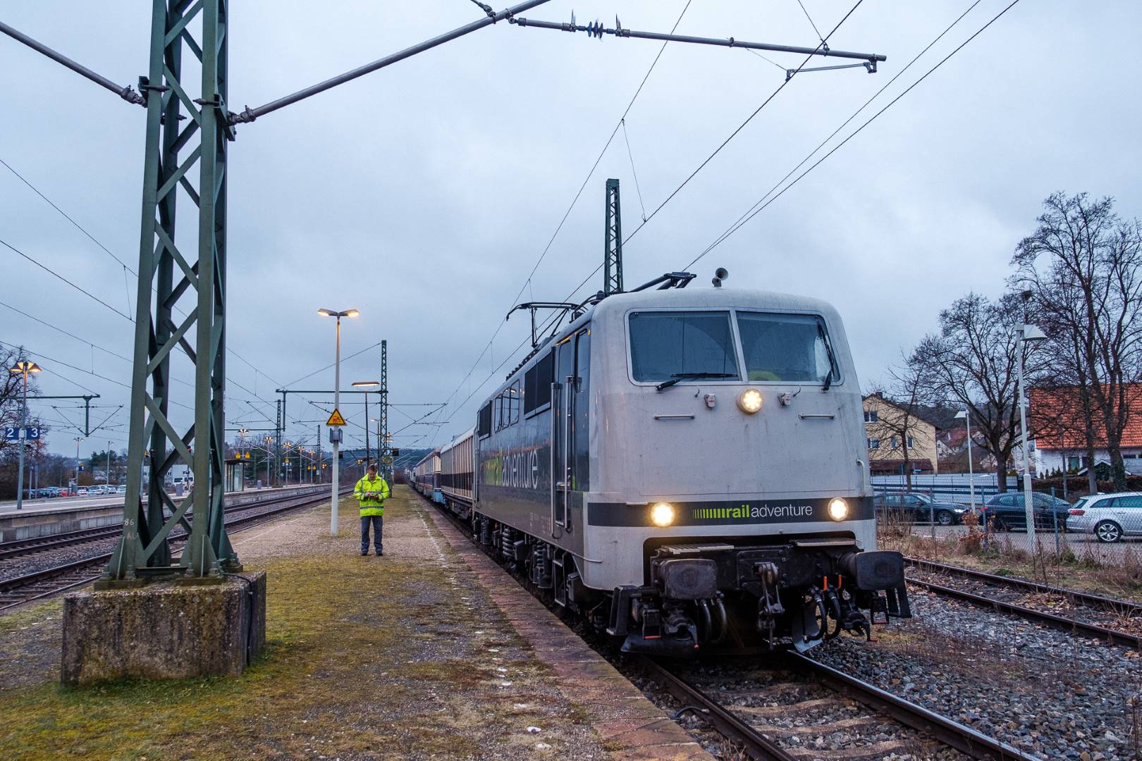 The transfer took two days and lead from Munich via the Altmühl valley and many other small branch lines via Bamberg and the Saale valley to Delitzsch near Leipzig. The train was coupled between two adapter cars and a few brake cars to a locomotive from Rail Adventure, who was responsible for the whole transfer. We needed to check at each halt and during the ride that everything was technically OK and there were no bearings running hot.