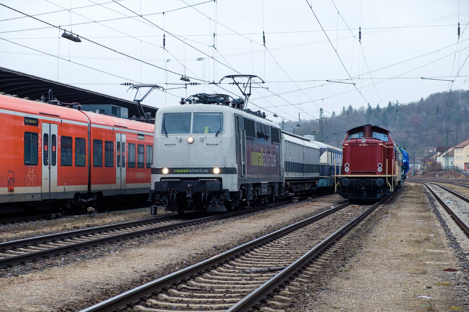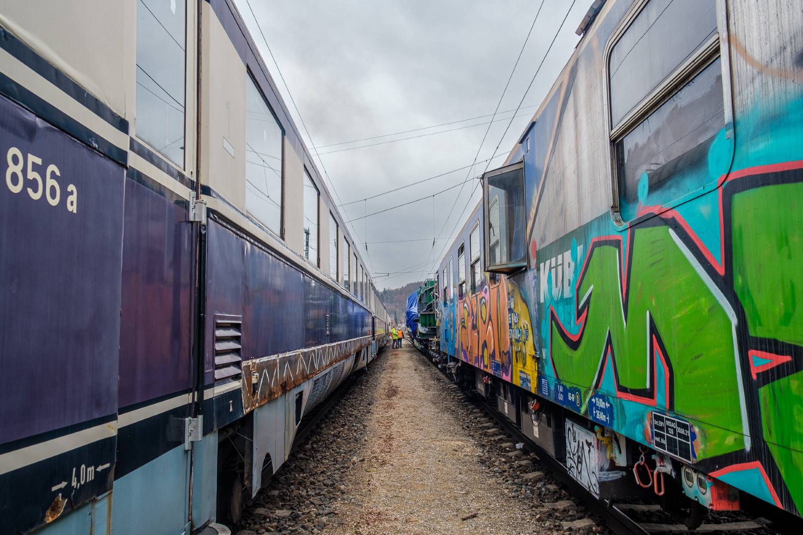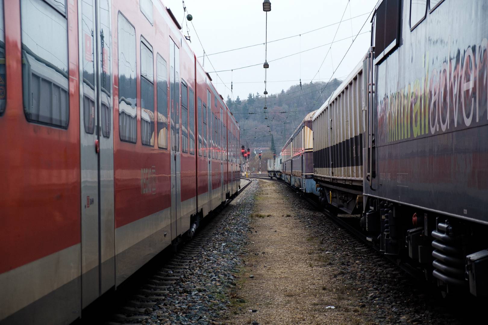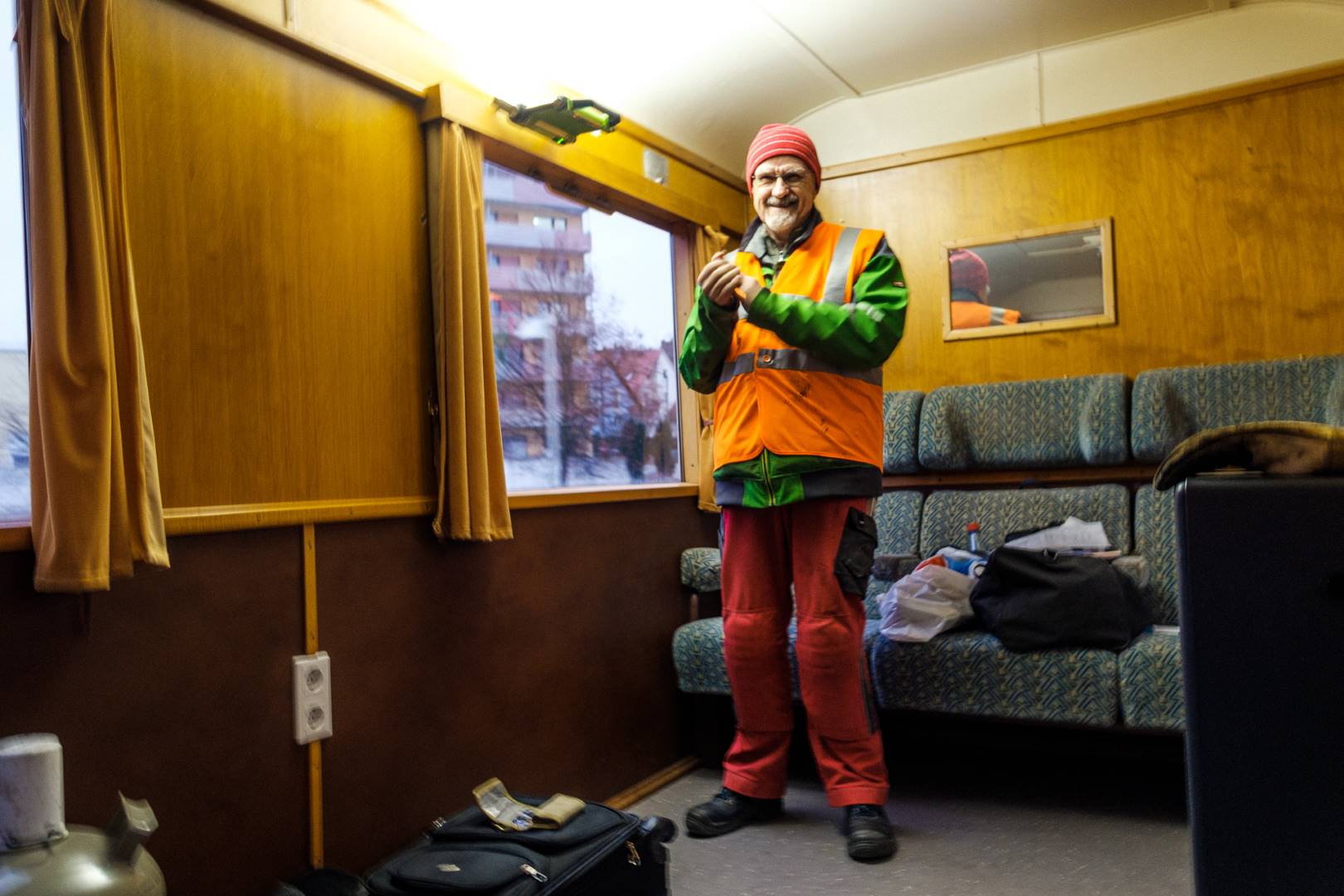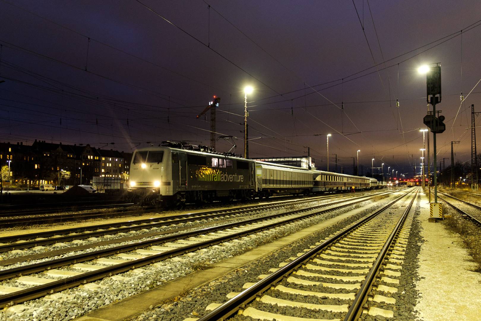 The transfer took two days and lead from Munich via the Altmühl valley and many other small branch lines via Bamberg and the Saale valley to Delitzsch near Leipzig. The train was coupled between two adapter cars and a few brake cars to a locomotive from Rail Adventure, who was responsible for the whole transfer. We needed to check at each halt and during the ride that everything was technically OK and there were no bearings running hot.