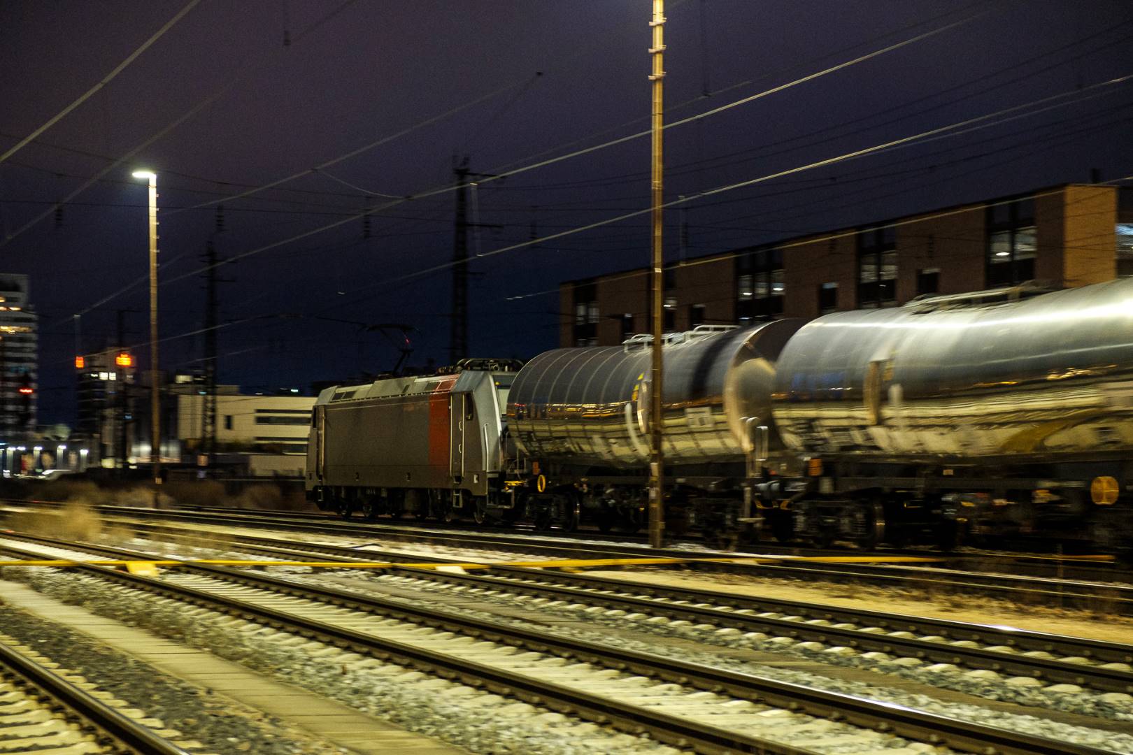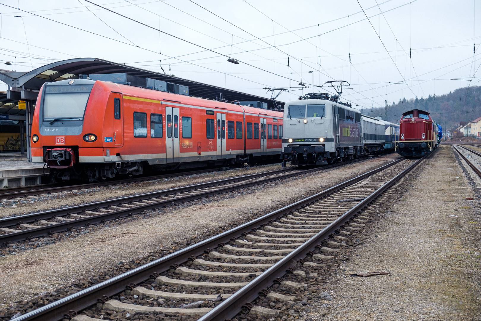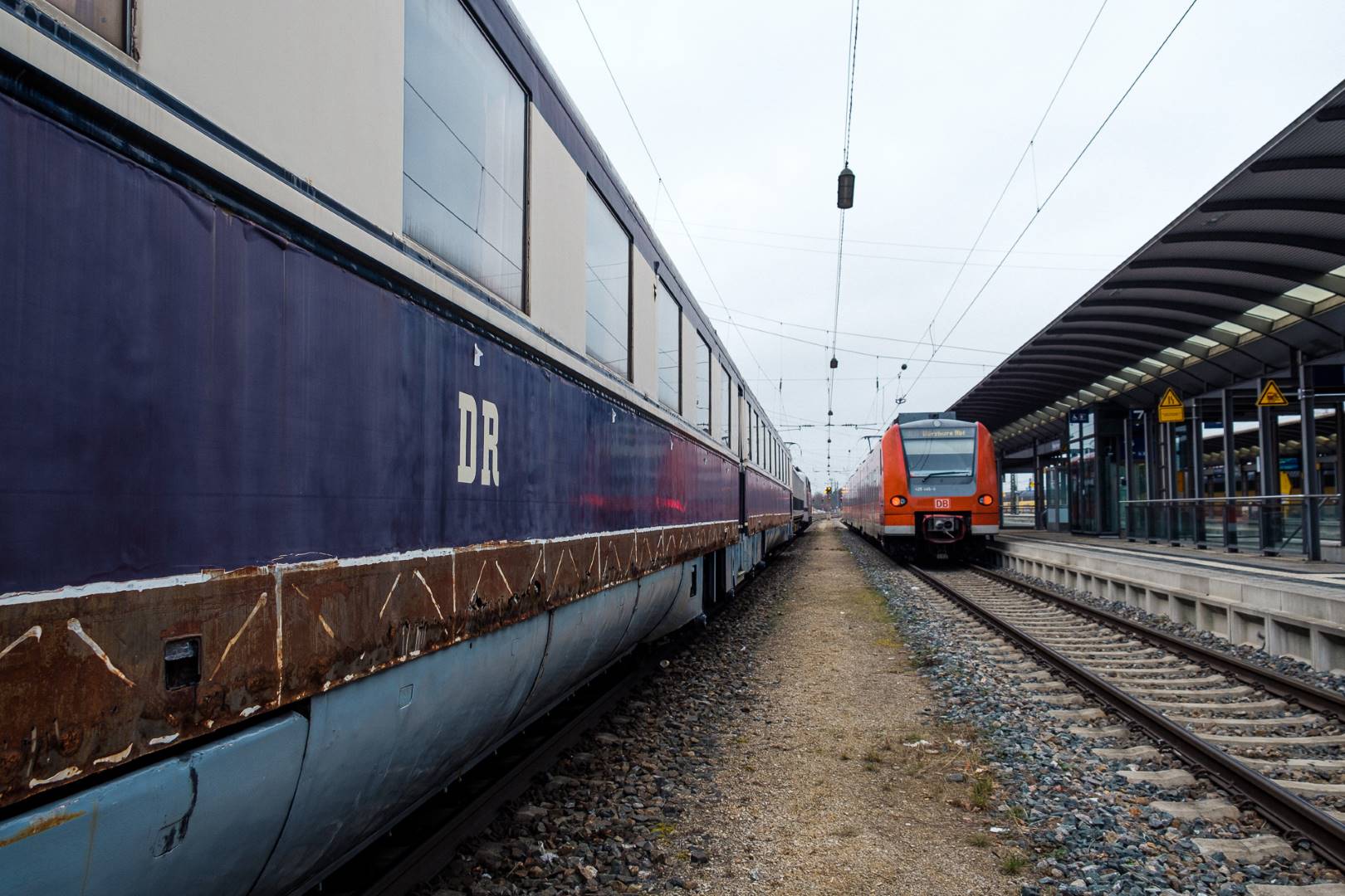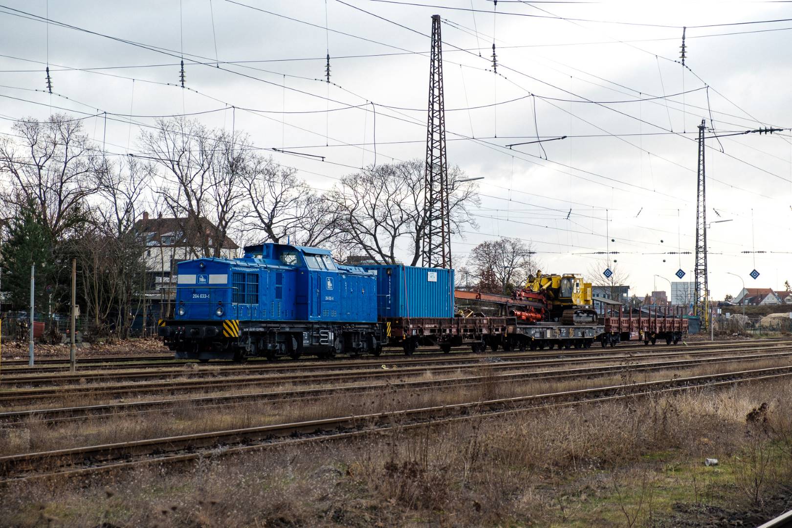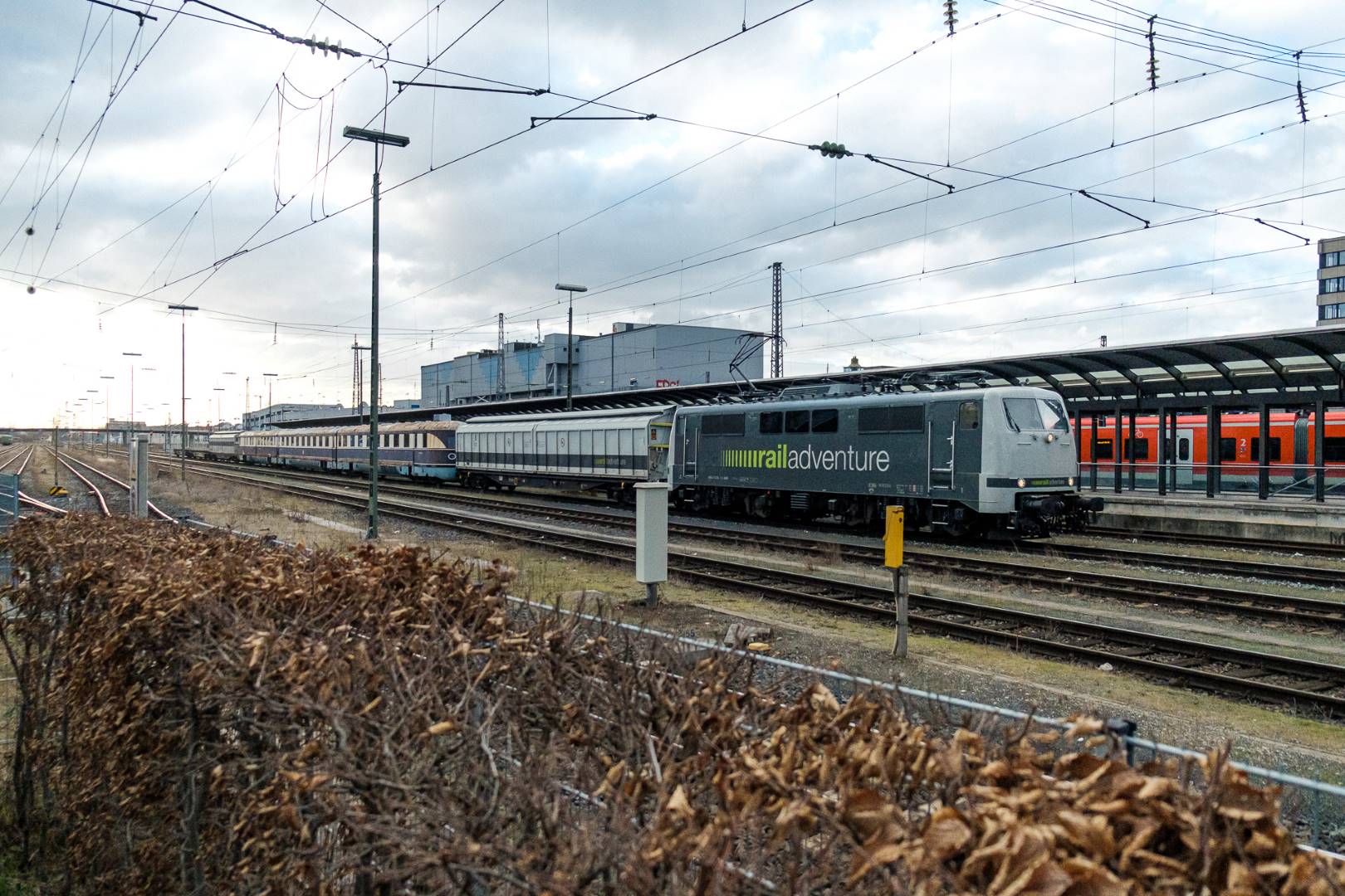 The transfer took two days and lead from Munich via the Altmühl valley and many other small branch lines via Bamberg and the Saale valley to Delitzsch near Leipzig. The train was coupled between two adapter cars and a few brake cars to a locomotive from Rail Adventure, who was responsible for the whole transfer. We needed to check at each halt and during the ride that everything was technically OK and there were no bearings running hot.