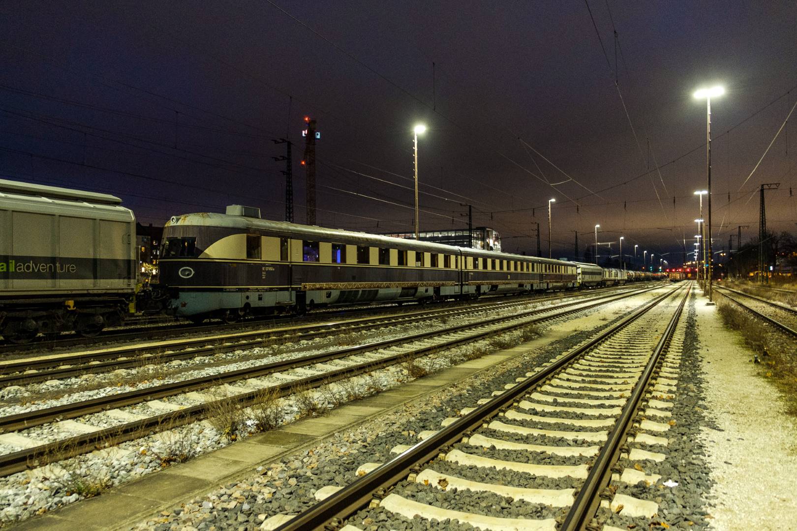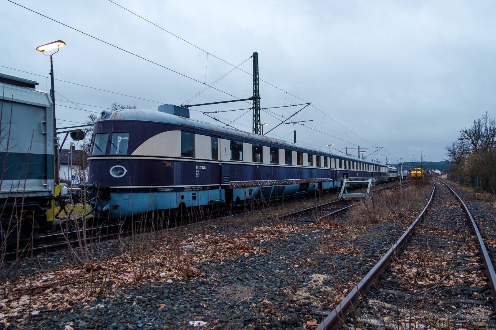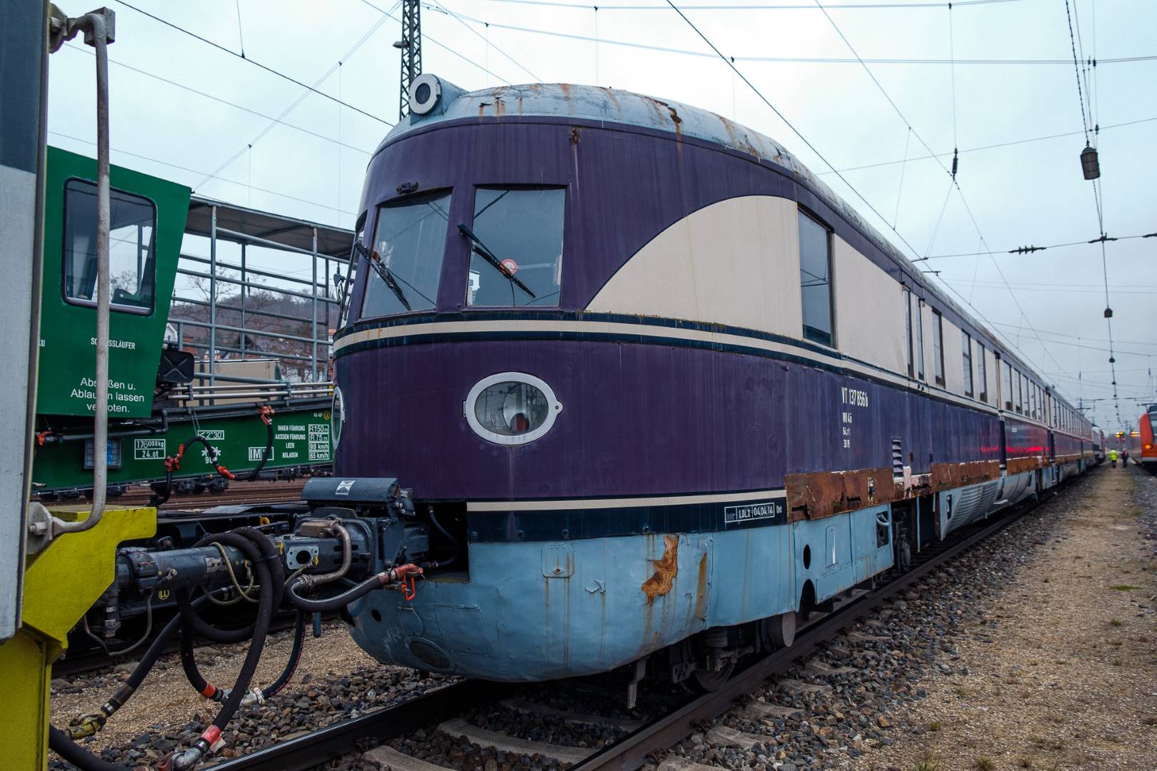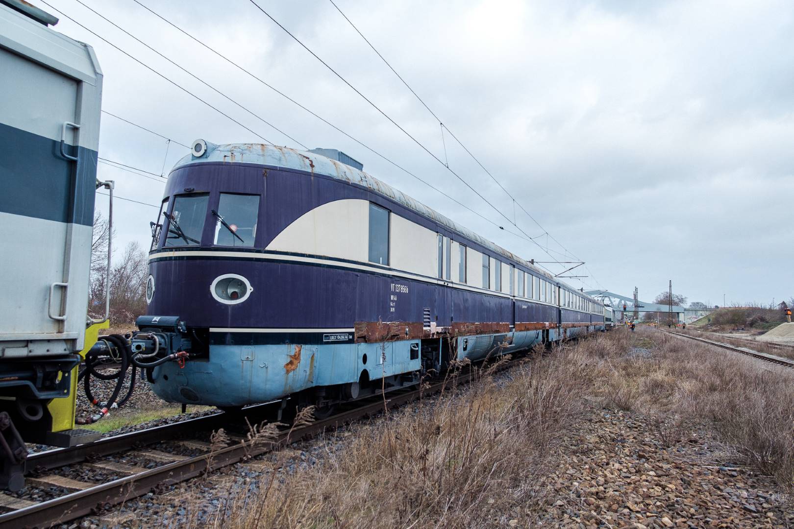 January 2022 I was able to participate in the transfer of a “Flying Train” of the “Köln” class from Munich to Delitzsch. This flying train is in the ownership of the “Förderverein Schnelltriebwagen e.V.” and will be brought back to operating conditions in Delitzsch.