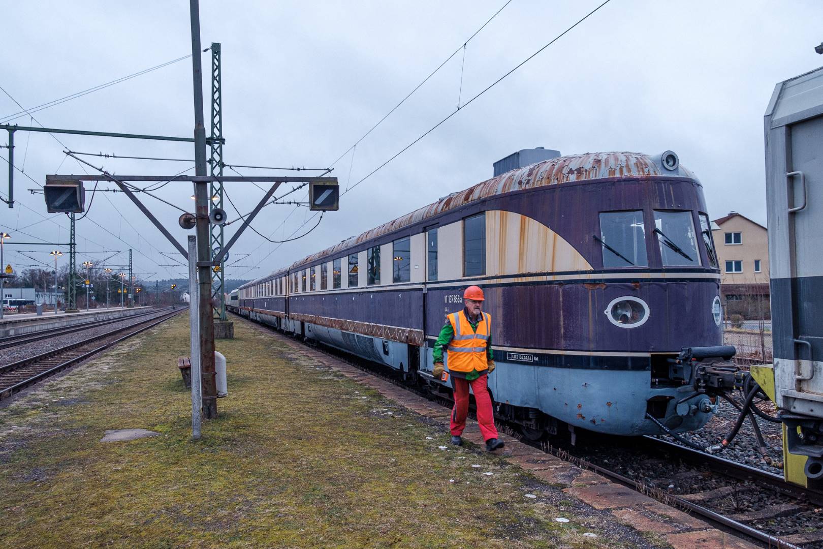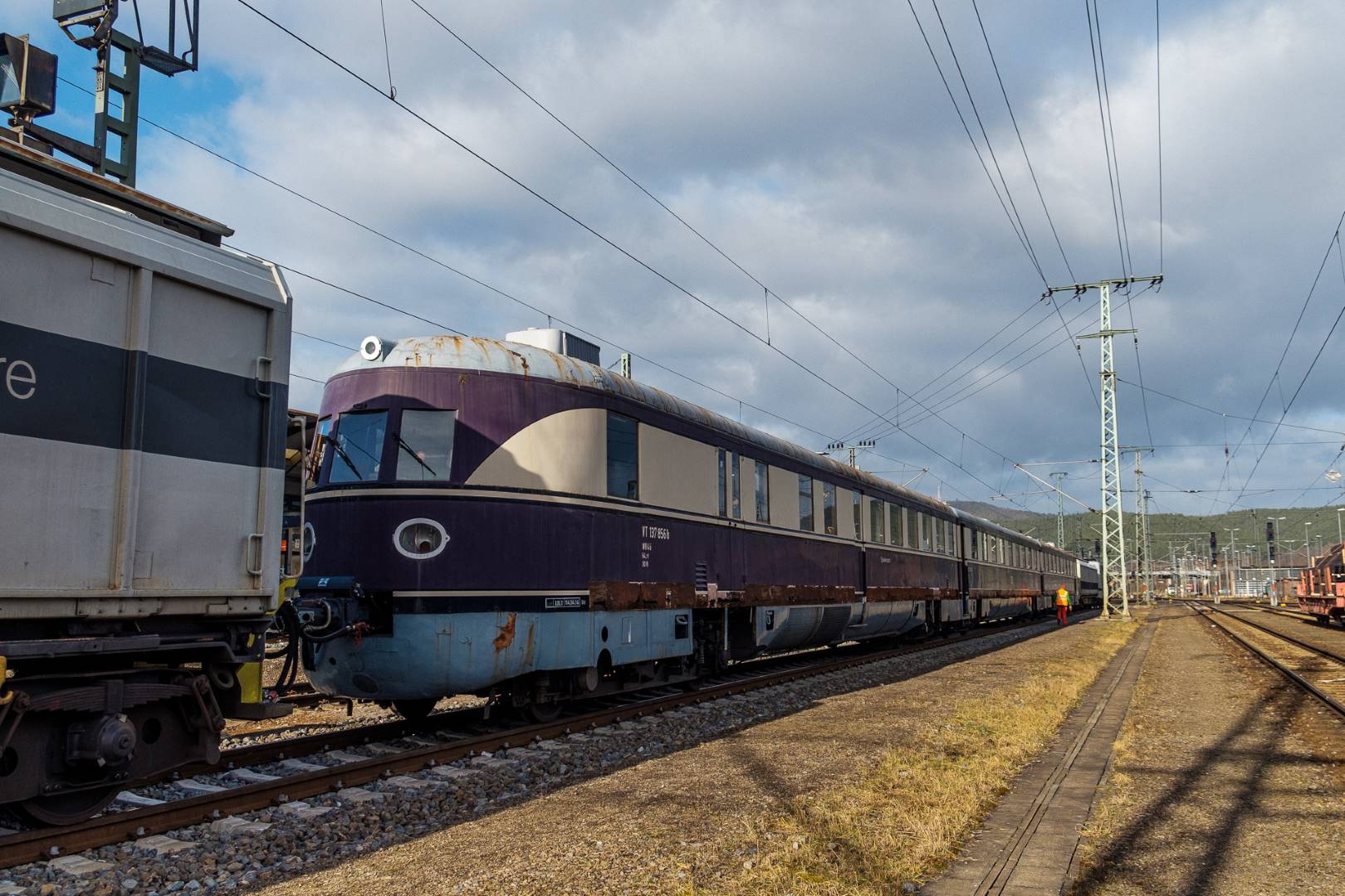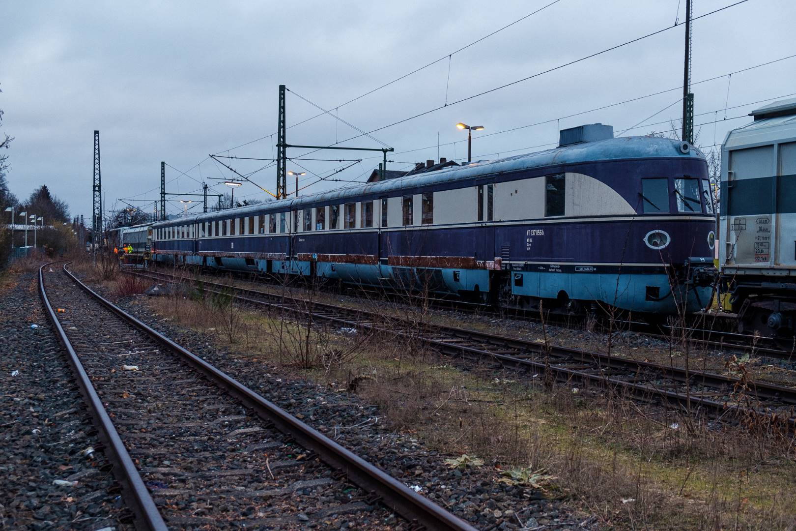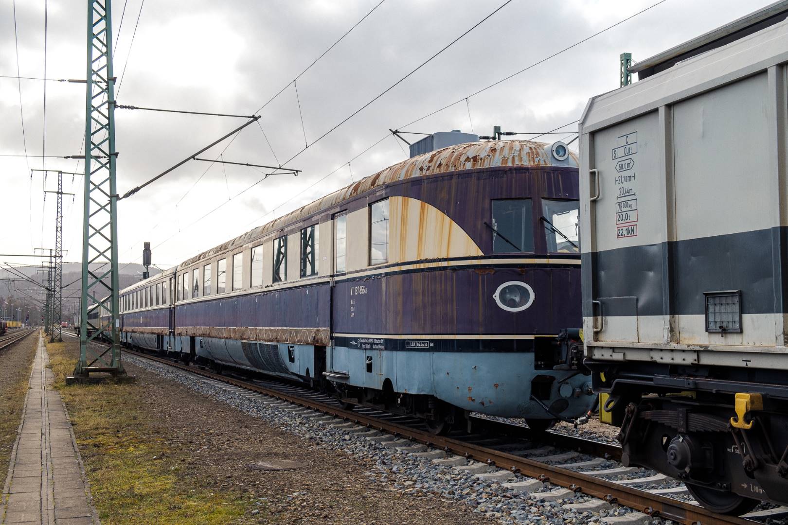 January 2022 I was able to participate in the transfer of a “Flying Train” of the “Köln” class from Munich to Delitzsch. This flying train is in the ownership of the “Förderverein Schnelltriebwagen e.V.” and will be brought back to operating conditions in Delitzsch.