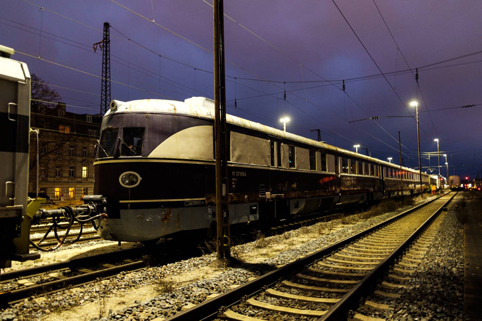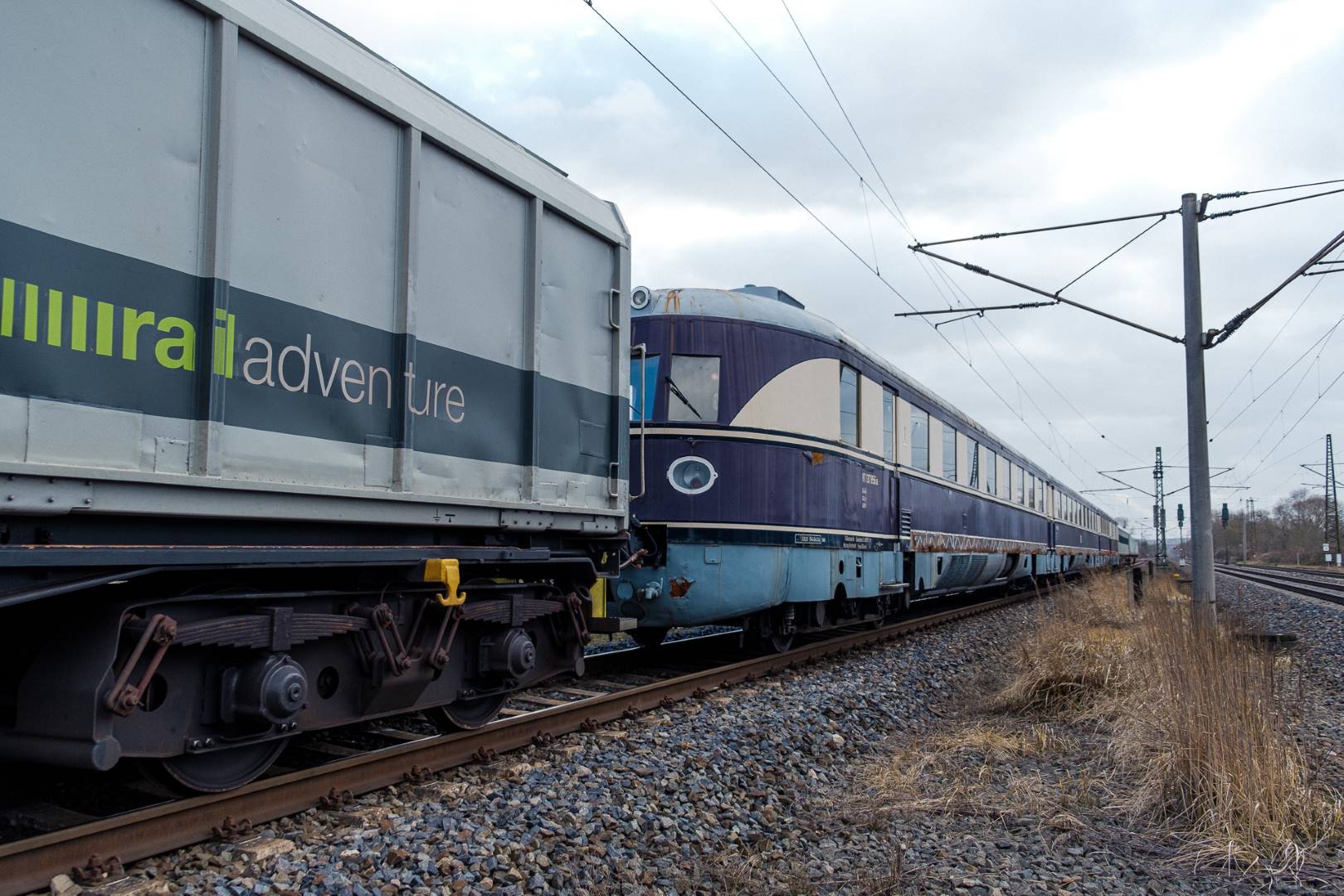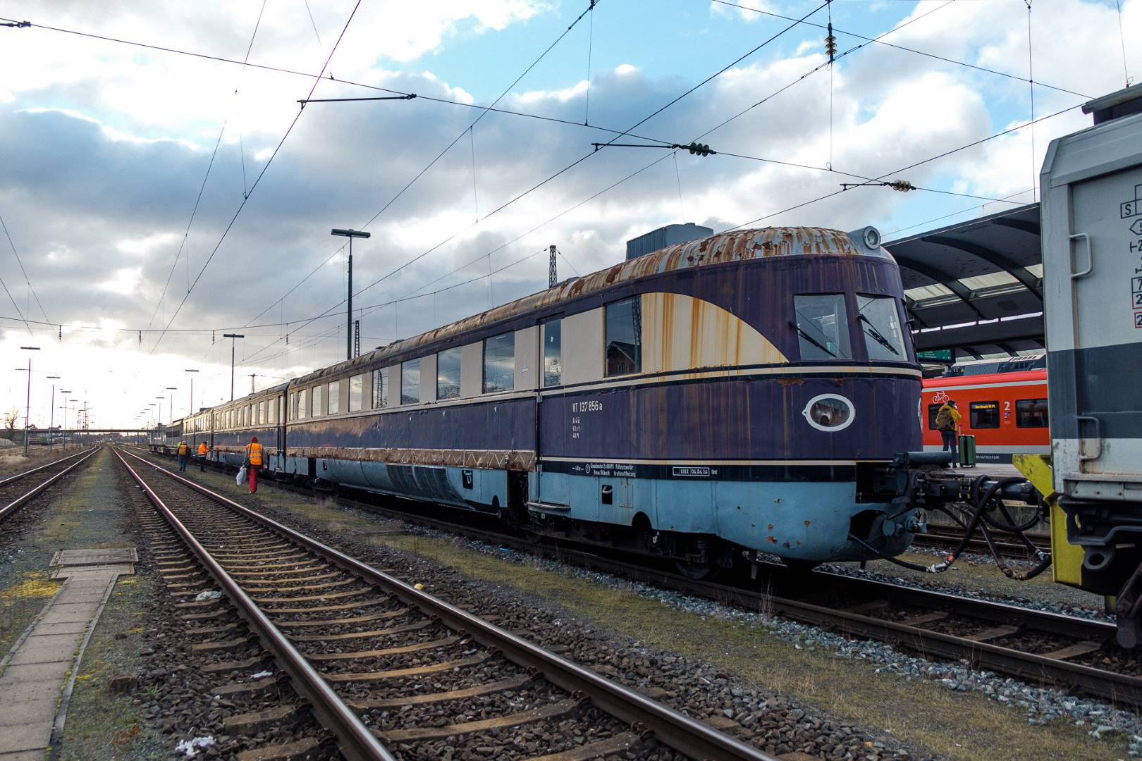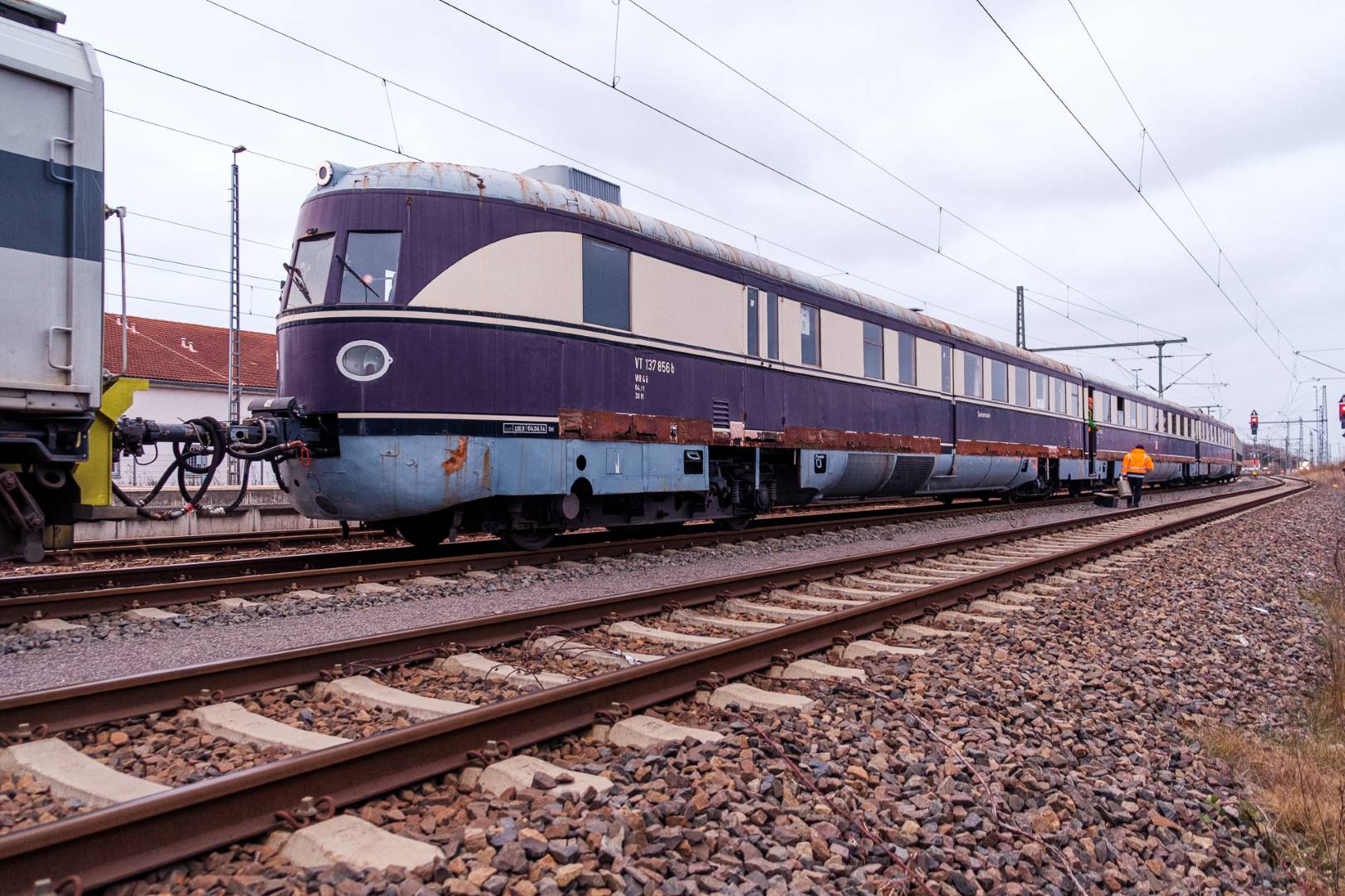 January 2022 I was able to participate in the transfer of a “Flying Train” of the “Köln” class from Munich to Delitzsch. This flying train is in the ownership of the “Förderverein Schnelltriebwagen e.V.” and will be brought back to operating conditions in Delitzsch.