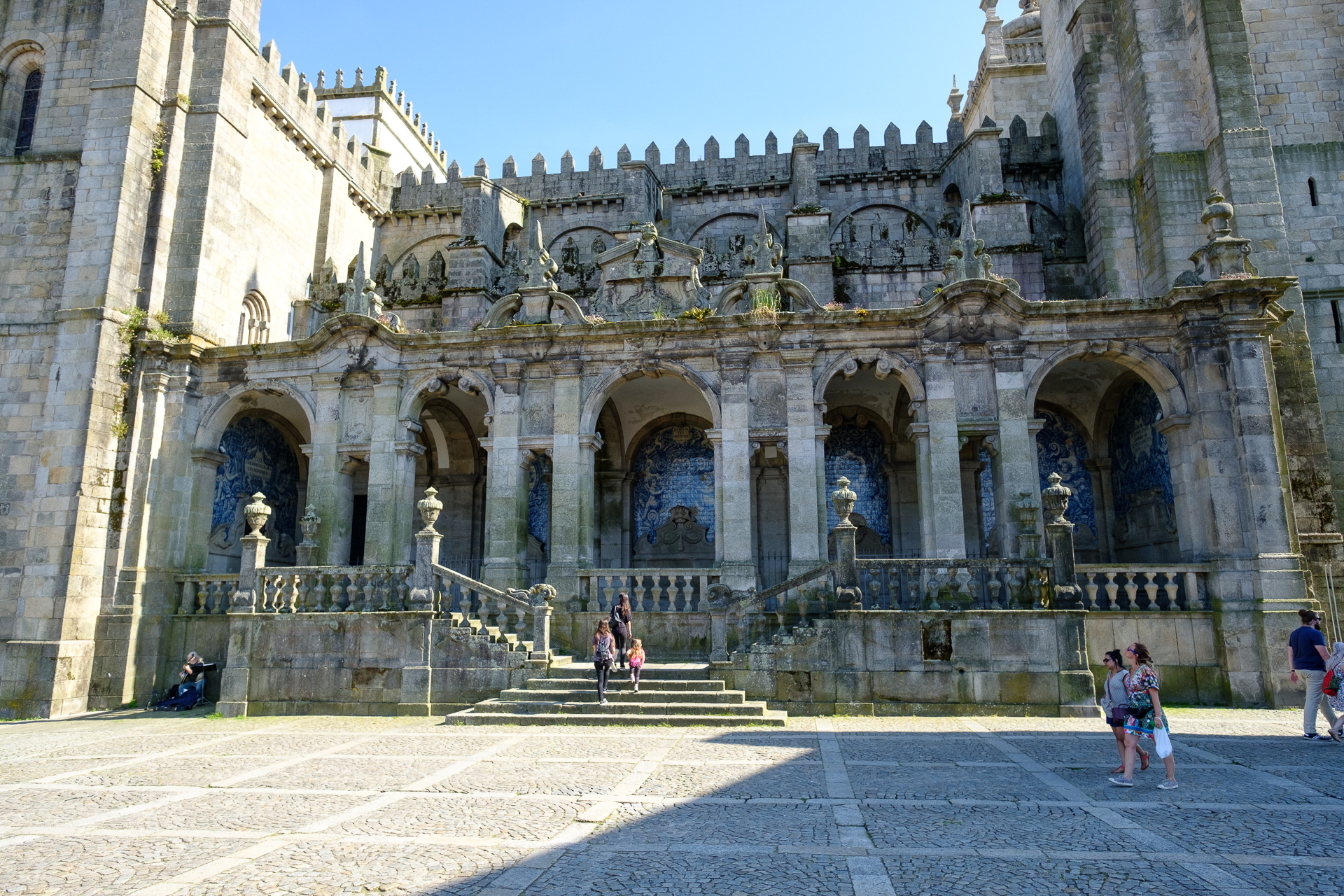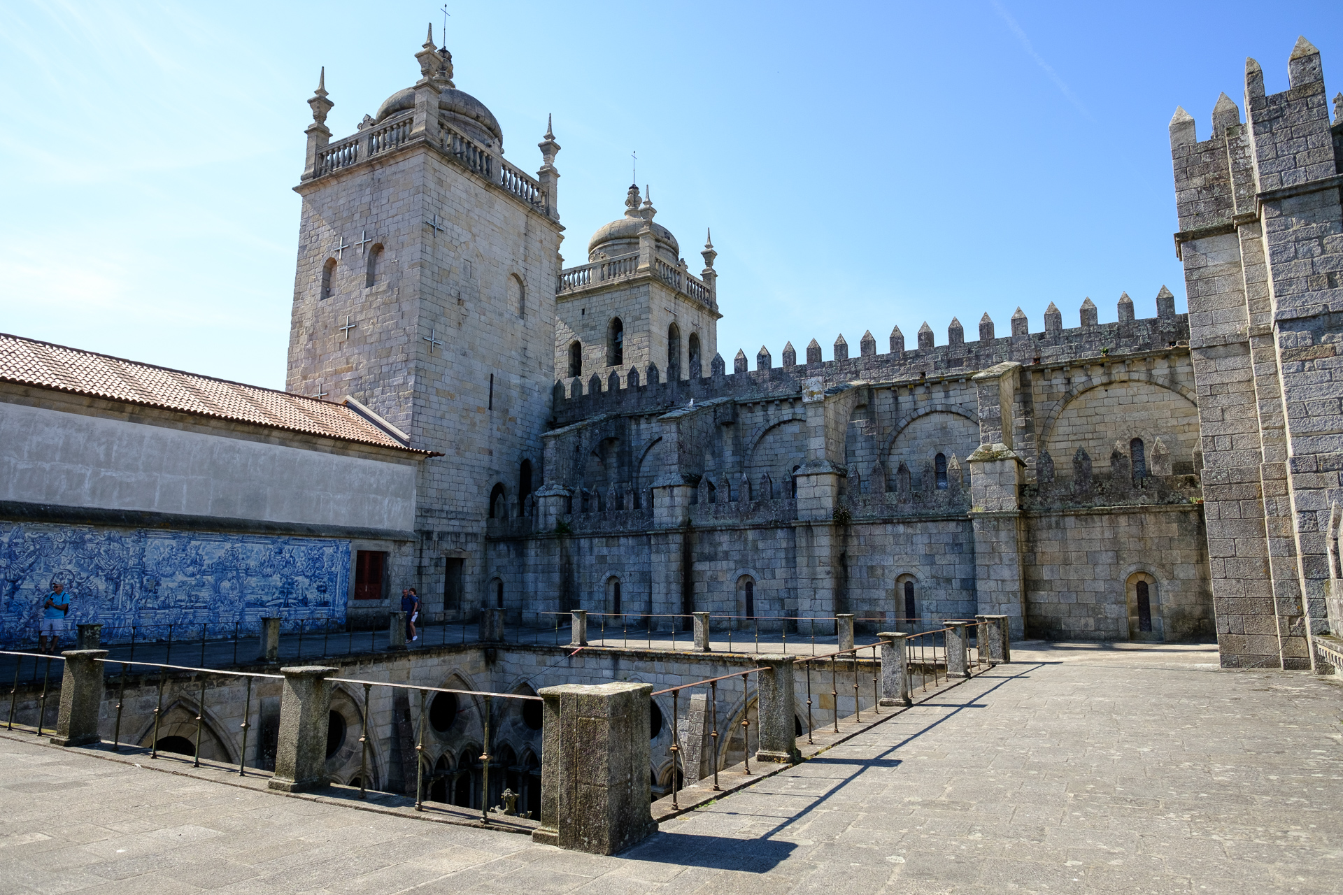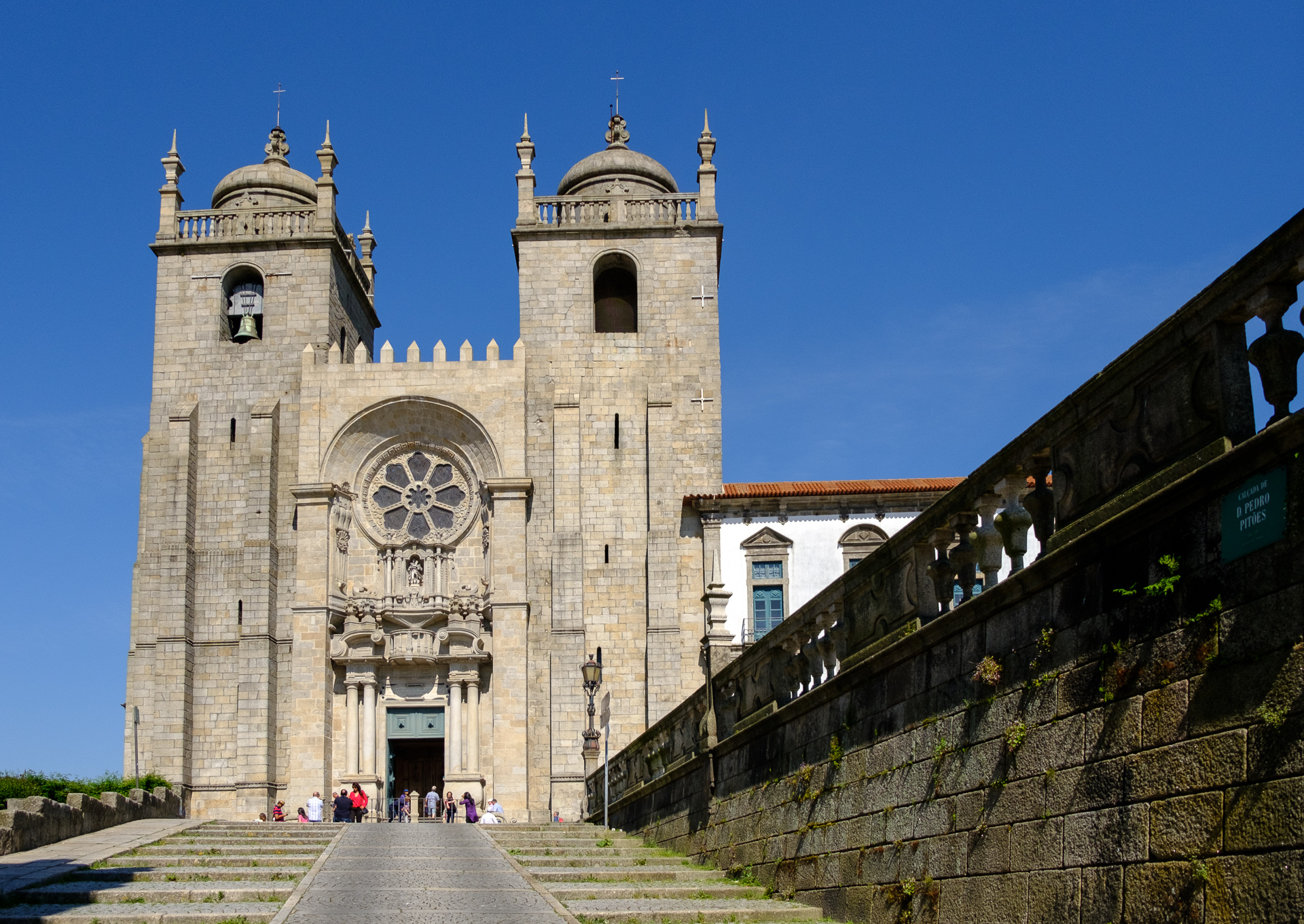 Hoch über dem Douro, im Zentrum des mittelalterlichen Portos erhebt sich die Kathedrale, entfernt an eine Burg erinnernd. Nähert man sich ihr aus den engen Gassen der Altstadt sieht man zuerst ihre Türme, die über dem Anstieg zum Vorplatz hervorstehen.