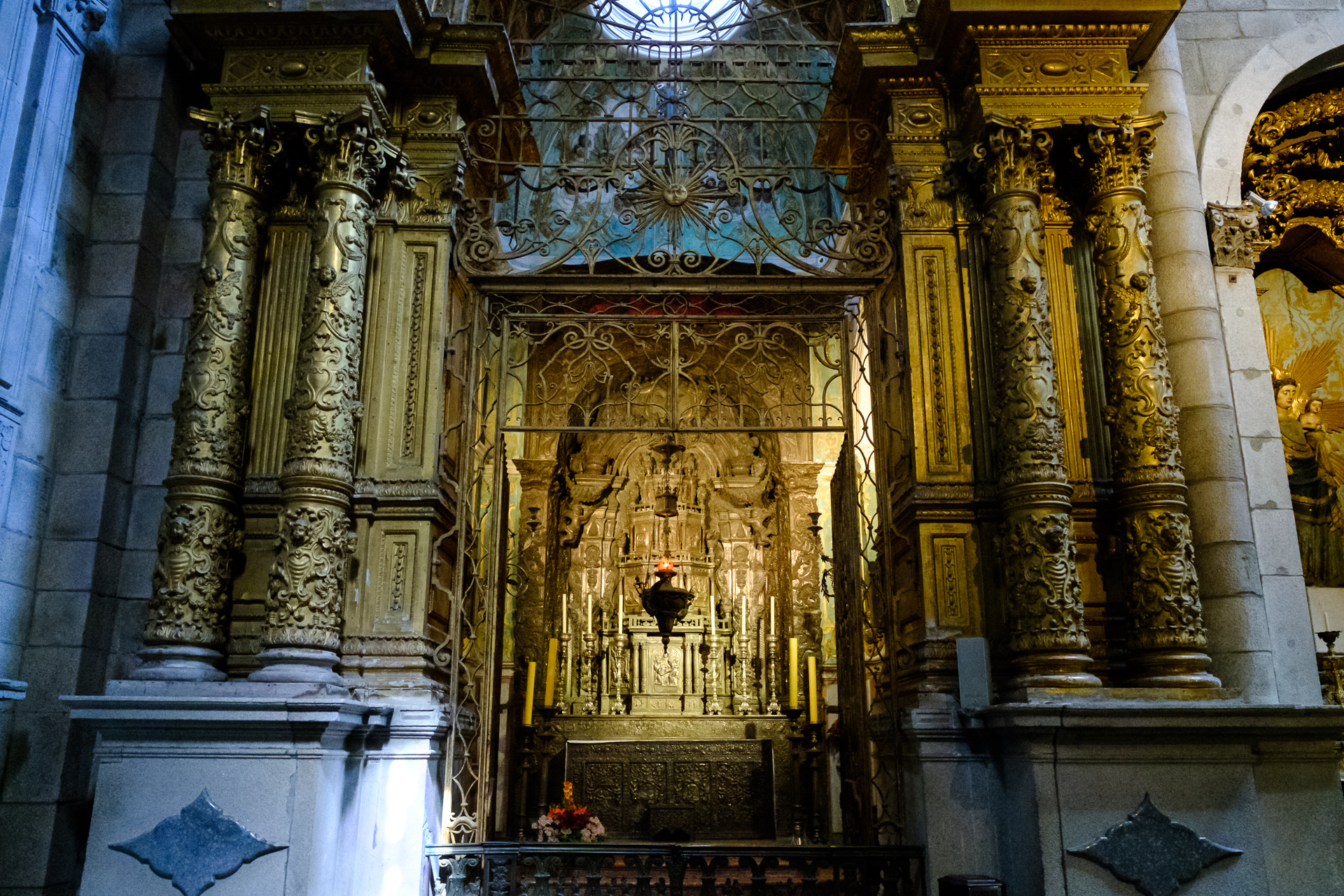 Im linken Querhaus befindet sich auch die Kapelle des heiligen Sakramentes, deren Altar eines der beeindruckendsten Werke portugiesischer Gold- und Silberschmiede ist. Der Altar besteht komplett aus getriebenem Silber und wurde über drei Jahrhunderte erschaffen. Die Arbeit wurde 1632 von José Rodrigues Reixeira begonnen und erst im 19. Jahrhundert abgeschlossen. Während der Napoleonischen Invasions Portugals zu Beginn des 19. Jahrunderts fürchtete man, die französischen Truppen würden das Silber dieses Altars stehlen wollen. Eine lokale Legende (die sich heute in jedem Reiseführer findet und auch vor Ort immer noch von den Touristenführern erzählt wird) besagt, dass ein Angestellter der Kirche den Altar mit Kalk weiss übermalt hat, damit das Silber nicht mehr erkennbar war – und diese Tarnung hätte verhindert, dass der Altar zerstört wurde.