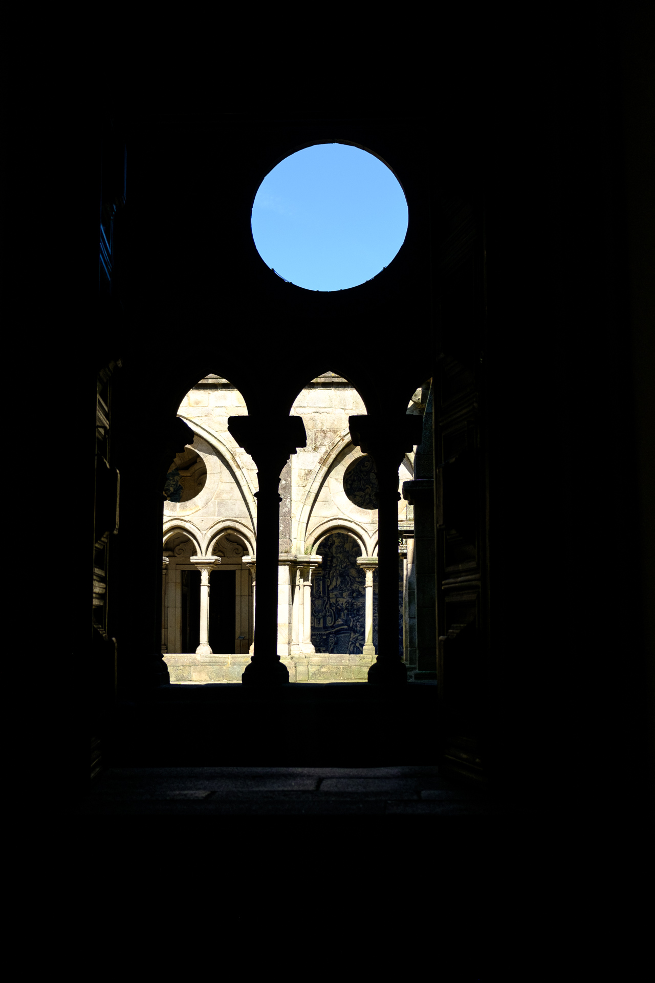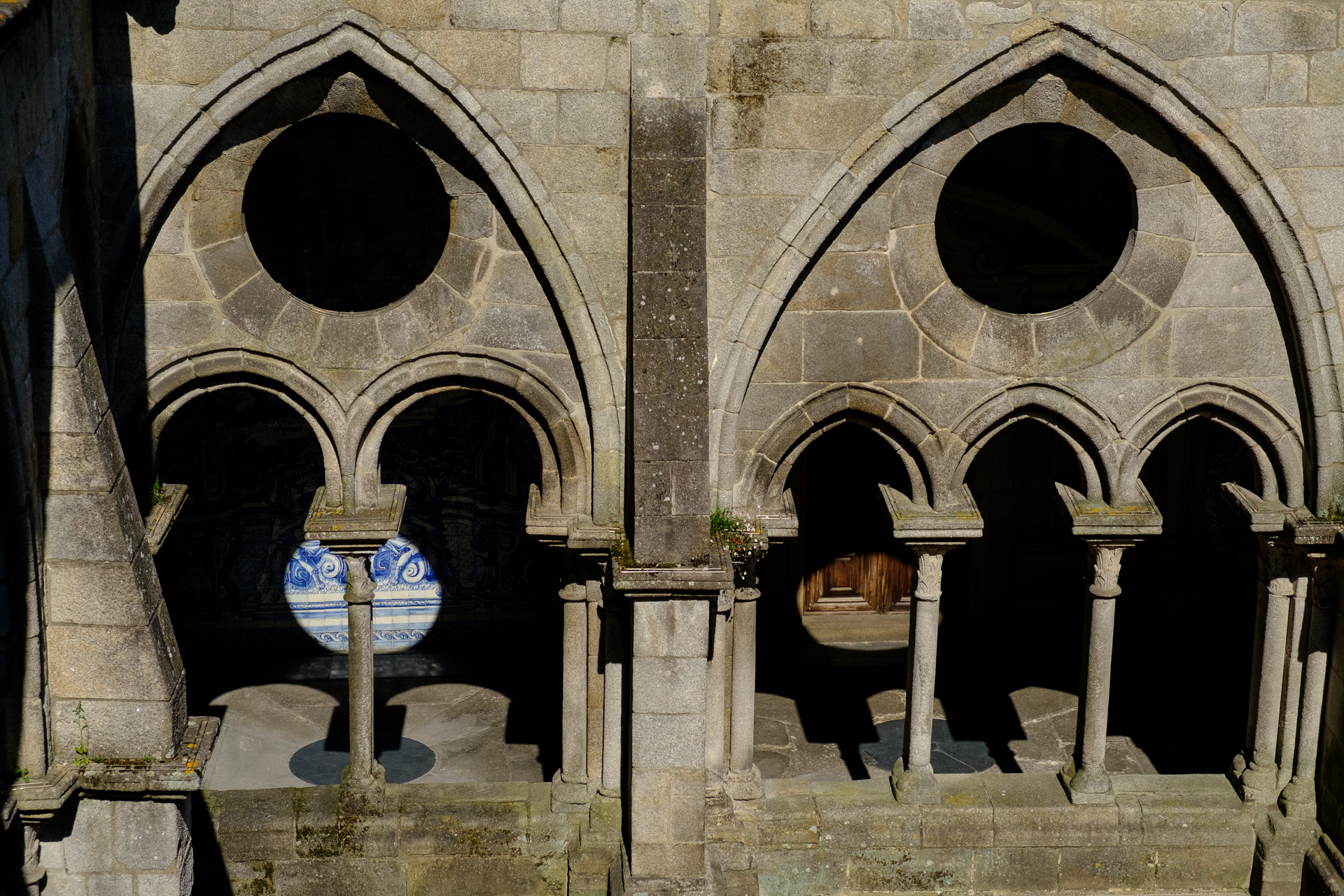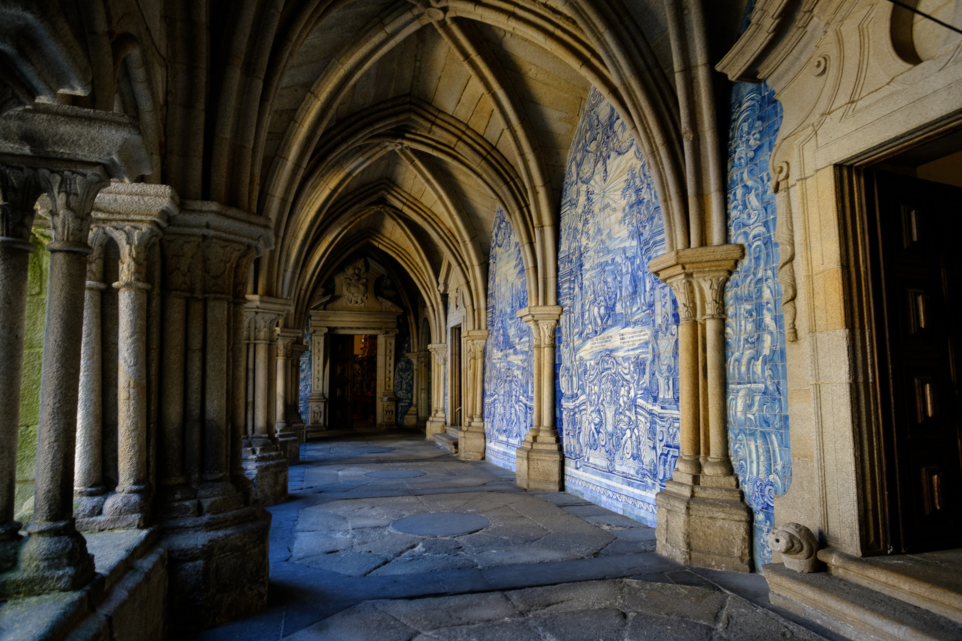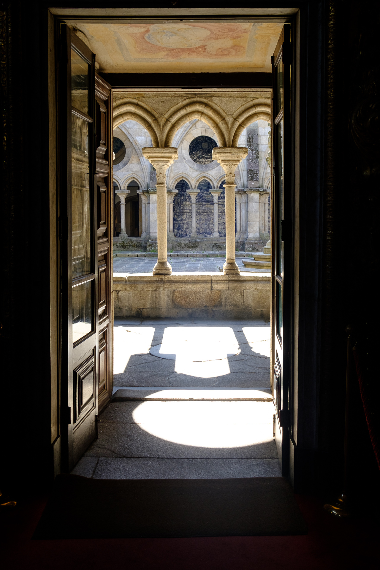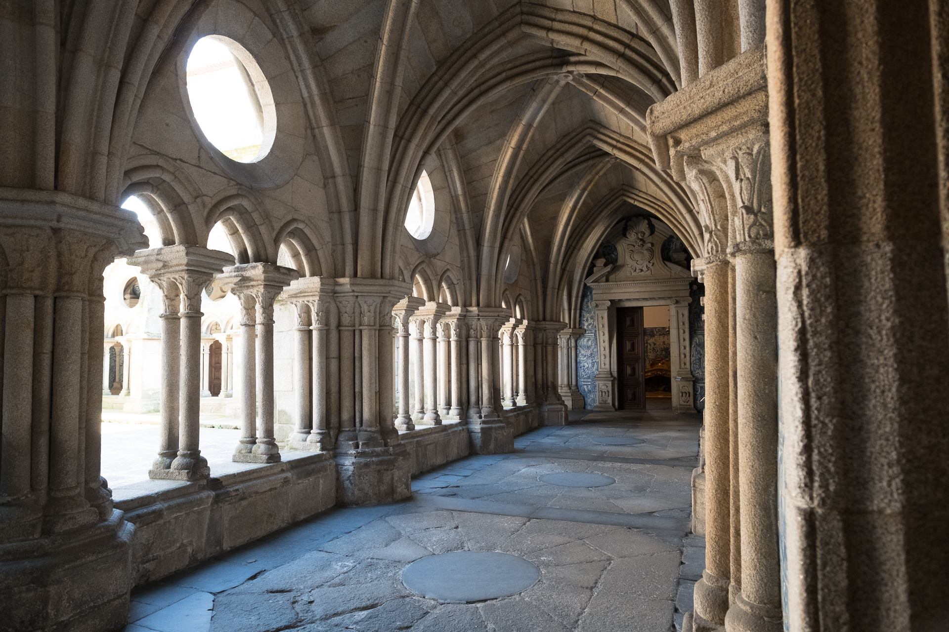 Im Süden schließt sich an die Kathedrale ein gotischer Kreuzgang an (der Eintritt kostet und über den man in das Museum der Kathedrale gelangt). Der Kreuzgang ist rundum mit Azulejos gekachelt, die von Valentim de Almeida zwischen 1729 und 1732 bemalt wurden. Die Fliesen zeigen das Leben Mariens und Szenen aus den Metamorphosen von Ovid.