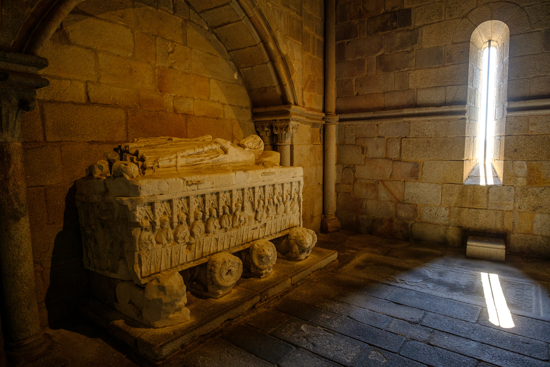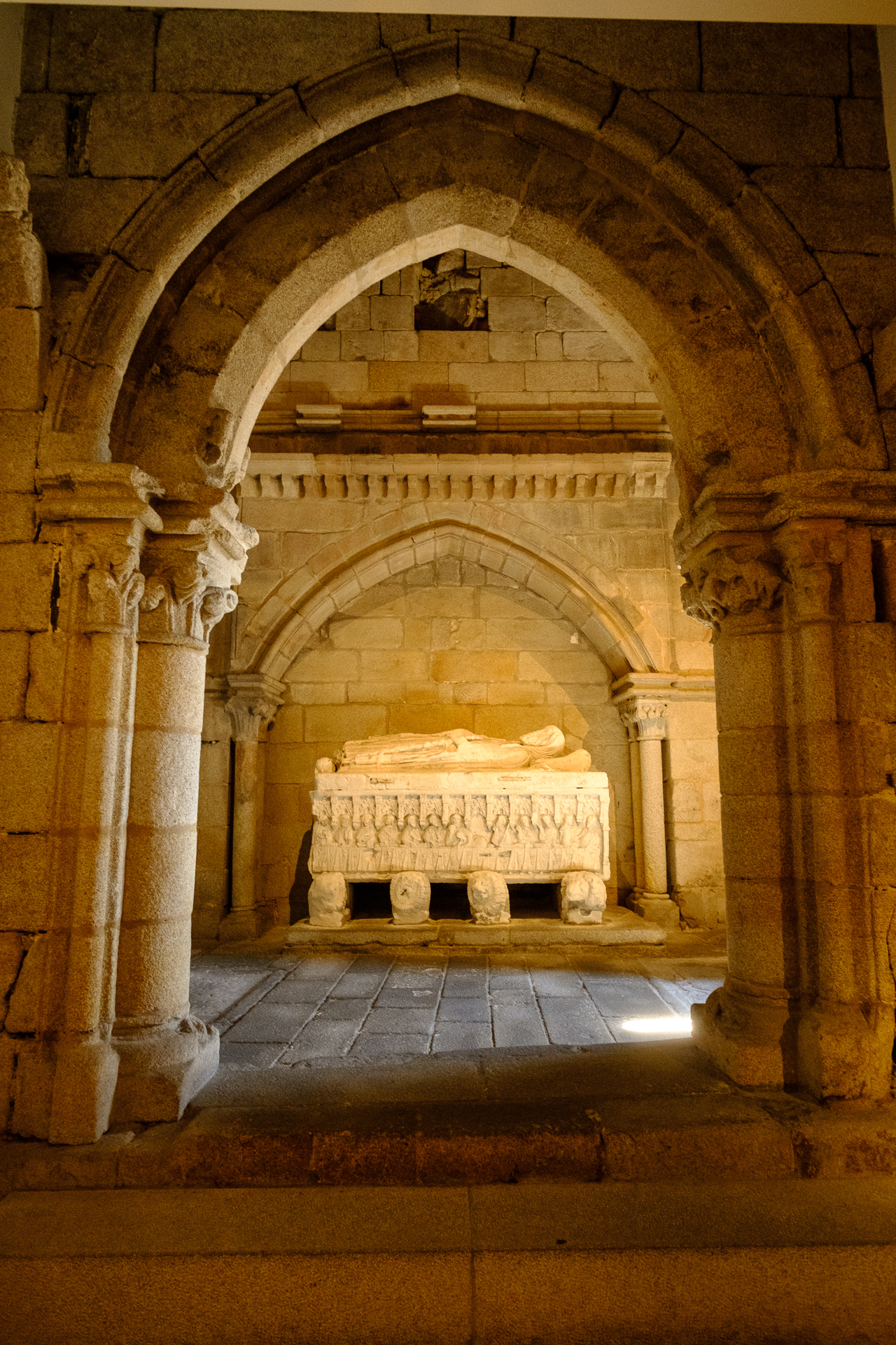 Hier findet sich auch eine der schönsten Arbeiten der Kathedrale, die von vielen übersehen wird. In einer Kapelle, die sich am Südende des Kapitelhauses befindet, findest sich einer der schönsten mittelalterlichen Sarkophage in Portugal. Auf vier Löwen ruhend befindet sich hier der Sarg von João Gordo, einem Ritter des Malteserordens und Vertrautem Dom Dinis (João Gordo war Schatzmeister des Königshauses). Er starb am 10. Dezember 1333 und für ihn wurde diese Kapelle gebaut – geschichtlich interessant, da er einer der wenigen Bürger ist, dem eine solche Kapelle und ein solcher Sarkophag gebaut wurde. Normalerweise sind solche Monumente Königen und Geistlichen vorbehalten; damit wird deutlich, welch wichtige Stellung João Gordo in der damaligen Gesellschaft gehabt haben muss.