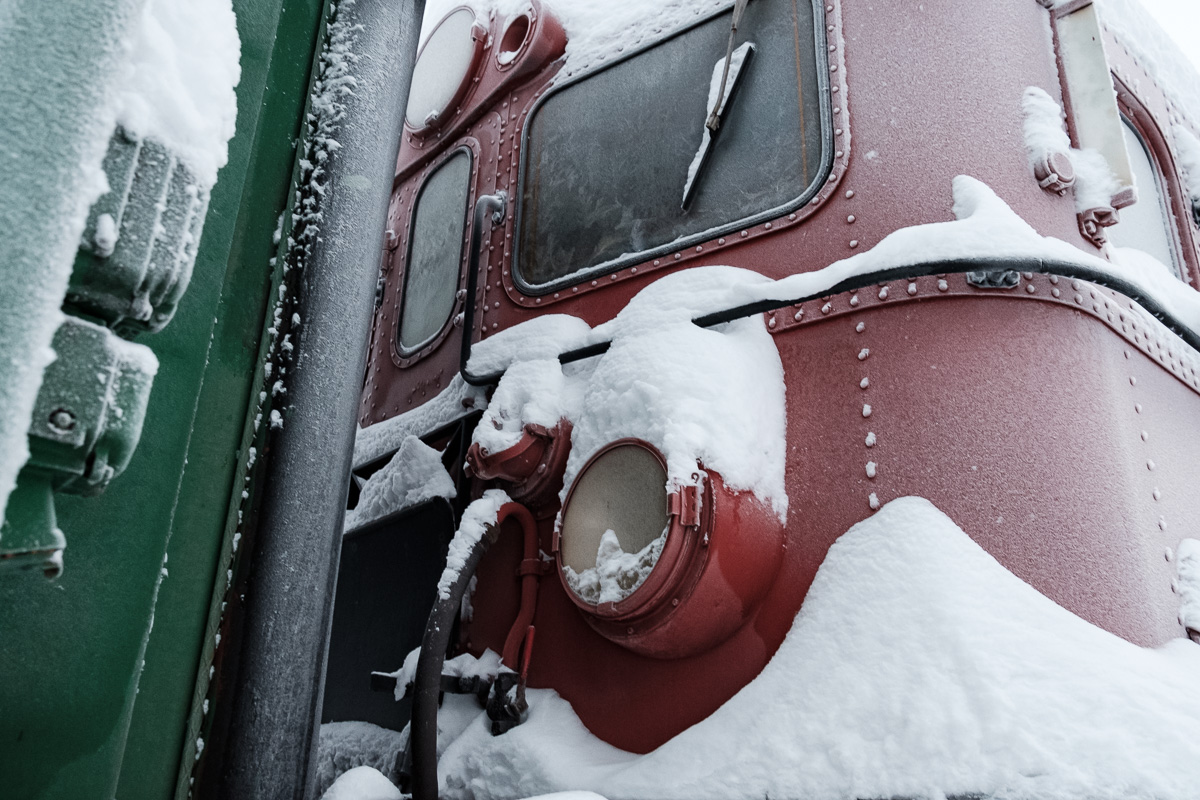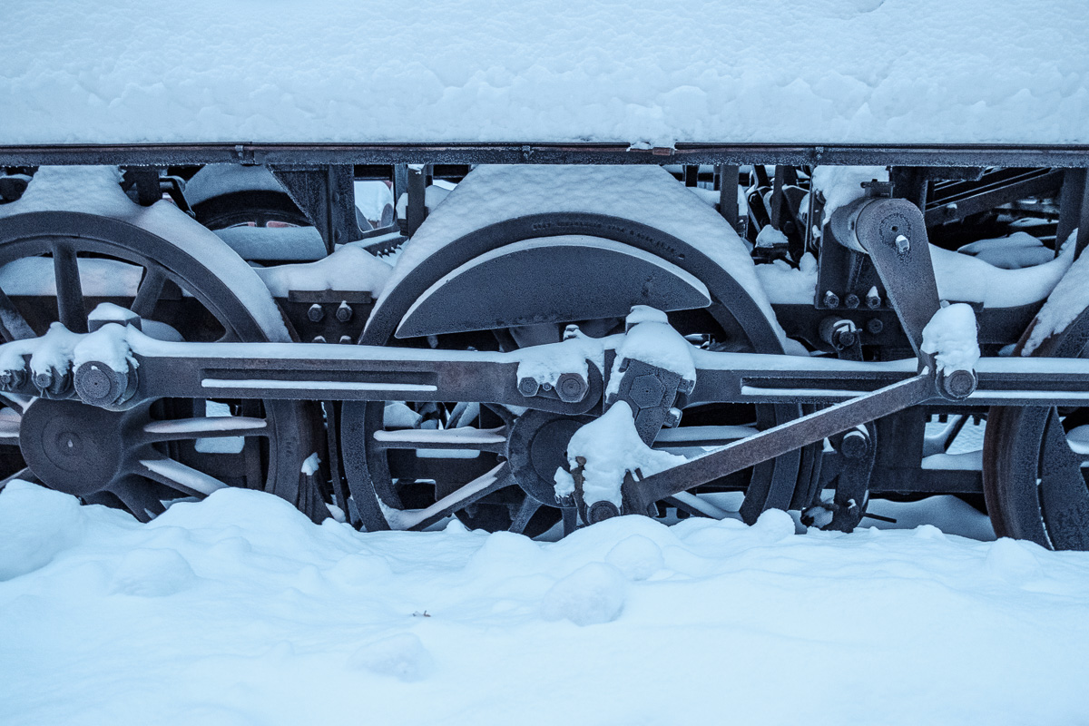 Leider war es geschlossen, aber es gibt ein riesiges Freigelände auf dem man herumlaufen hätte können, wenn nicht etwa ein Meter hoch Schnee gelegen hätte. Aber gottseidank gab es ein paar frei geräumte Wege, so dass wir einige Exemplare aus der großen Sammlung von Lokomotiven und Wagen des Museums anschauen konnten.