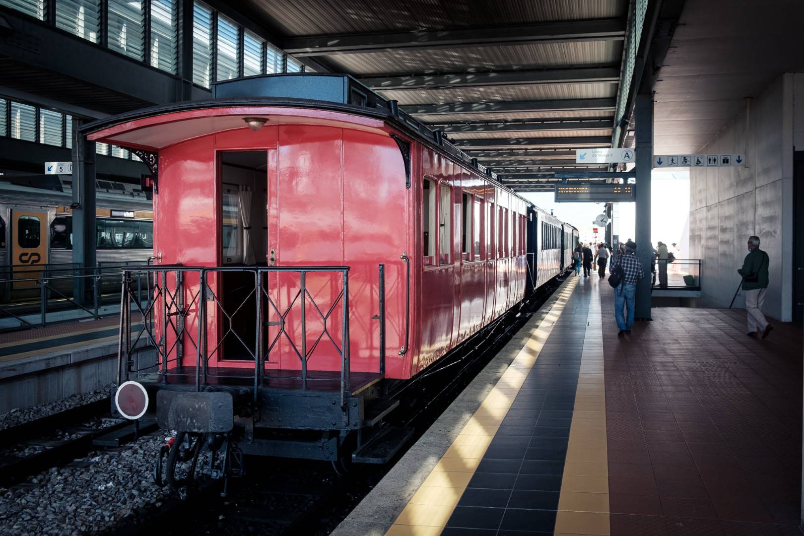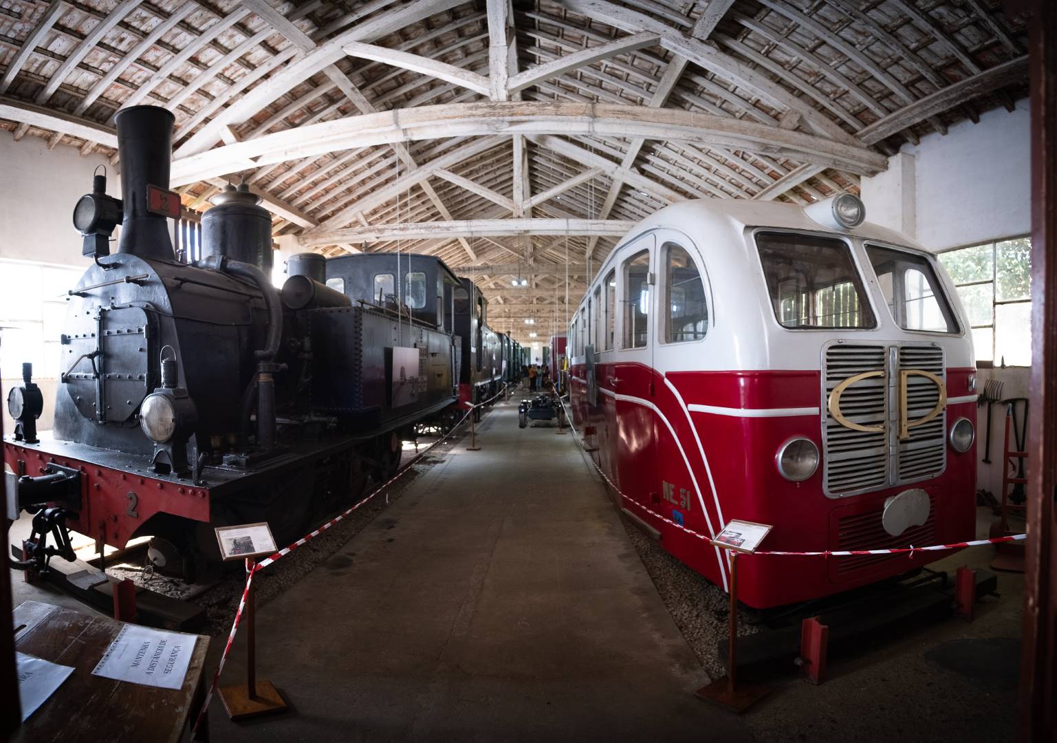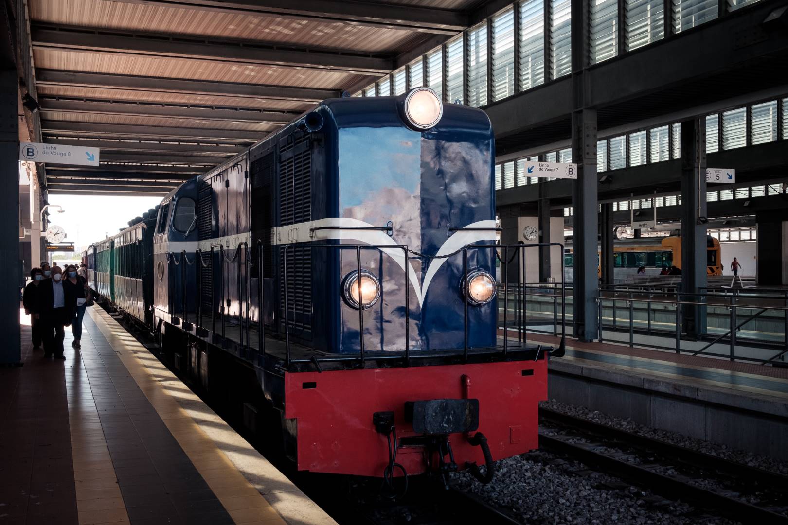 Normalerweise fahren hier halbwegs moderne Triebwagen, die aber auch schon bessere Zeiten gesehen haben. Aber im Sommer fährt an Wochenenden auch ein historischer Zug, mit Wägen aus dem Anfang des 20. Jahrhunderts und Lokomtiven von Alstom aus den 1950ern. Die Landschaft ist zwar nicht sehr malerisch an großen Teilen der Strecke, aber der Zug ist sehr schön und das Museum (und die Animation) an der Endstation ist gelungen. Auf der Rückfahrt gibt es noch einen längeren Halt in Agueda, bei dem man die Stadt besichtigen kann, die vor allem wegen der Regenschirme in der Fußgängerzone eine gewisse Instagram-Bekanntheit erreicht hat.